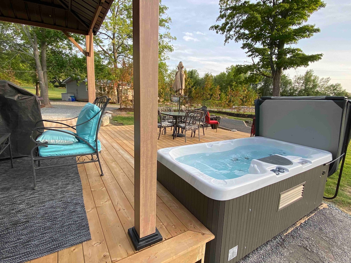 Experience the ultimate outdoor adventure or work-from-home getaway at our cozy 1-bedroom, 1 bathroom vacation rental in Marmora across from the picturesque Crowe River. With kayak and paddle board rentals, hot tub, fire pit, AC, & high speed internet, you'll have everything you need for a comfortable stay. Enjoy a fully equipped kitchen, 75 inch TV, and explore the nearby rivers, lakes, trails and local shops and restaurants. Stay connected with reliable internet and unwind with nature.