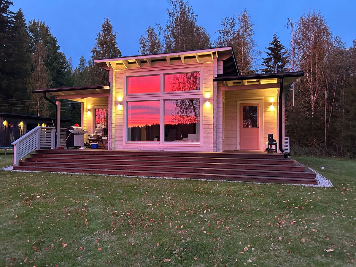 120 neliöinen omakotitalo järven rannalla, jossa upea terassialue aina valmiilla ulkoporealtaalla viidelle. Lasipaviljonki on rantasaunan yhteydessä sekä ulkobaari. Hyvin varusteltu talo mahdollistaa rentouttavan loman jokaisena vuoden aikana. New beautiful house (120m2) with amazing lake view. The house is well equipped and has a large terrace, lakeside sauna with a glasshouse and an outside bar. There is everything you need for relaxing and lovely vacation in peaceful nature.