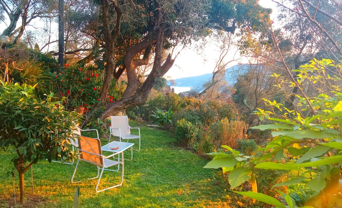 La casa è totalmente indipendente, immersa nel verde dell'uliveto ligure, con una vista mozzafiato sul Golfo Paradiso. Il panorama fruibile dalle terrazze e dalle finestre si apre dall'estremo ponente ligure al Monte di Portofino e nelle giornate limpide fino all'arcipelago toscano e la Corsica. Il mare (500 m.) Recco(1200 m.) il Parco Nazionale di Portofino(3km) sono raggiungibili oltre che in auto, anche a piedi con panoramiche passeggiate; Genova-Nervi dista 12 km (SS1 Aurelia)