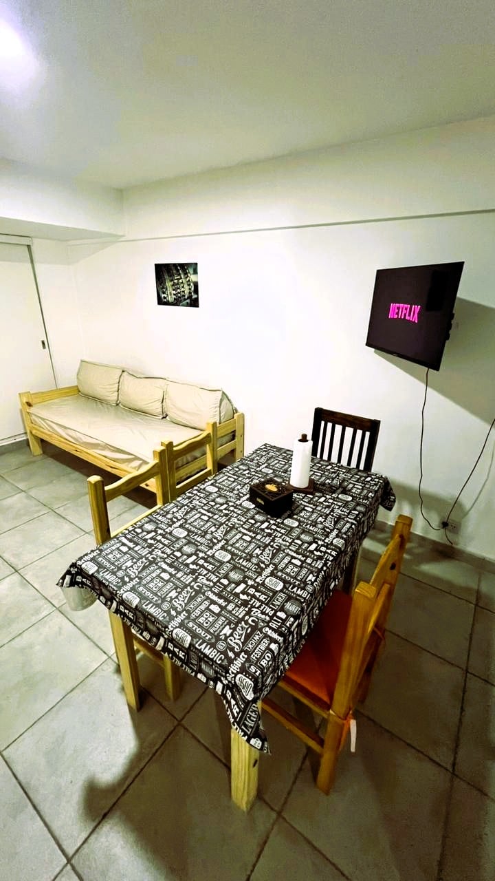 Hermoso departamento en pleno centro de la ciudad, a pasos de gran cantidad de restaurantes, tiendas comerciales, supermercados, oficinas turísticas y líneas de transporte. Todo a tu alcance. Sentite como en casa en un ambiente moderno, cálido y acogedor, en donde contas con todo lo necesario para hacer de tu estadía un momento único e inolvidable.