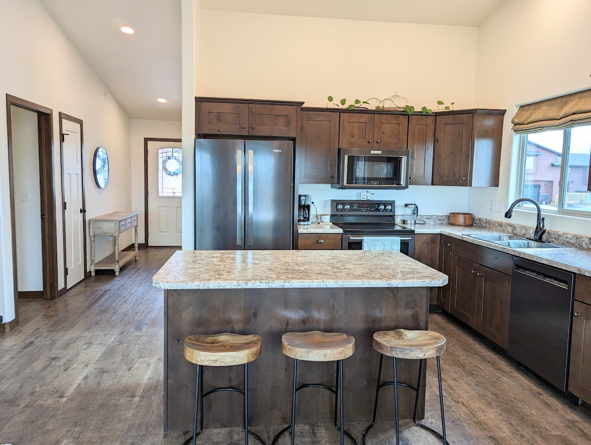 Enjoy a stylish experience at this centrally-located place. Within walking distance to the nicest parks in Rapid City and if you bring your furry friends along the beautiful dog park is close by. Located minutes from downtown Rapid City, 30 minutes from Sturgis, and 45 minutes to Mount Rushmore! It features 2 bedrooms, a stunning freshly remodeled kitchen, living room with a sleeper sofa, and a grill that has a direct gas line to never worry about running out of propane! Book Now!