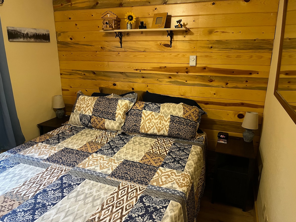 Sunrise Ridge w/ spacious outdoor area. Private entrance, parking, & patio area! Apartment is below main house; ground level, no stairs. Modern-rustic accents, remodeled stylish bathroom/kitchen with full amenities for baking/cooking. Wifi & Roku with free access to Netflix, Disney +, Max on big screen TV. One bedroom: King bed with twin size bunk bed; full size futon in living room. 4-7 day stay discount. No cleaning fee! See pictures & description-perhaps the right fit for your group!
