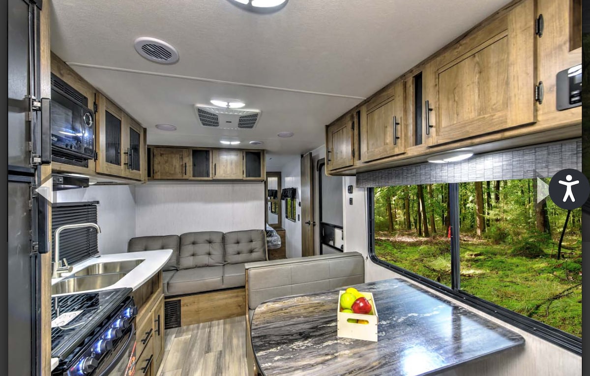 Just outside the buzz of D.C., a hideaway offers a peaceful, romantic retreat in the heart of Lanham. Surrounded by the natural beauty of Prince George's County, this cozy RV features a large full+full sofa bed, a full bed, soft lighting, and windows for golden sunset views. Enjoy intimate meals in the charming kitchenette, then unwind in your outdoor space. Whether you're stargazing or exploring nearby Lake Artemisia, this is the perfect spot to relax and make lasting memories.