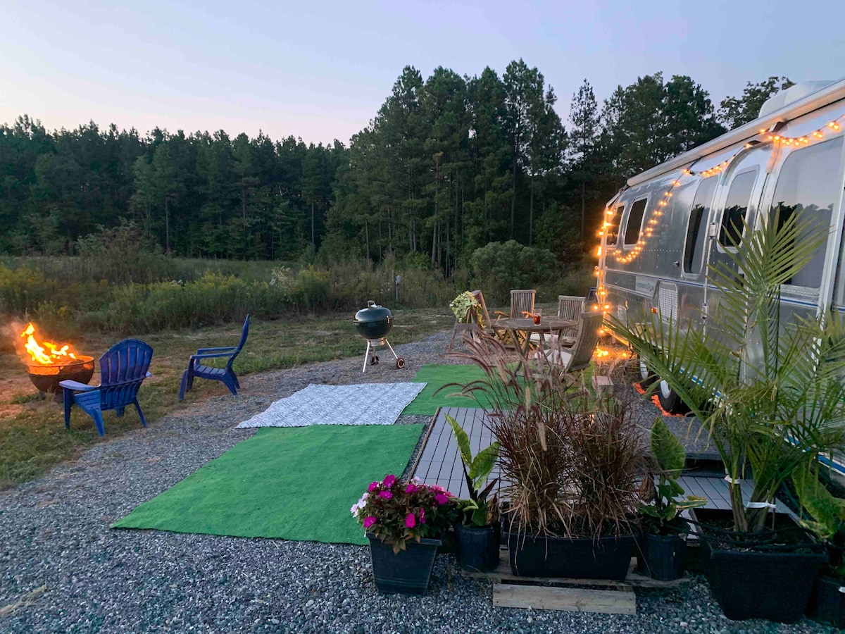 Tucked away in the woods on a historic Eastern Shore farm lies this stunning Airstream retreat 10 mins from Cape Charles. The 1969 Airstream has been converted into a contemporary studio with all the comforts of a luxury hotel room. Wake up to the birds singing in the trees that completely surround the huge front deck. Take a walk on our trails. Enjoy watching the animals. Take a trip into Cape Charles for restaurants and shopping, then enjoy a movie in the Airstream at night.