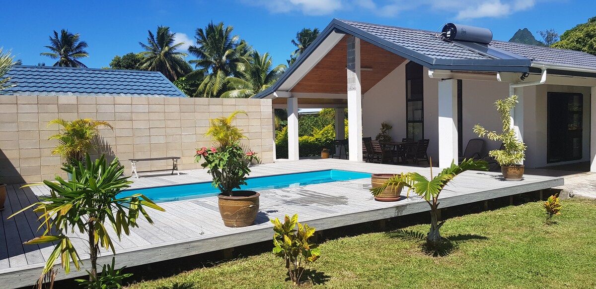 Air NZ CI Tourism Award: Best Holiday Rental, Trip Advisor Cert of Excellence, Booking Guest Review Awards, Airbnb SuperHost. Eco-friendly property facing the islands, the ocean, the lagoon and the mountains. Free Wi-Fi. House made with naturally treated Red Cedar. Organic herbs and fruits garden. Muri Village is 3 minutes by car. Private beach, swimming pool, aircon, insect screens, filtered water, toys, beach towels, badminton, snorkel gear, books, kayaks rentals. GT's Fishing Charters. Fish