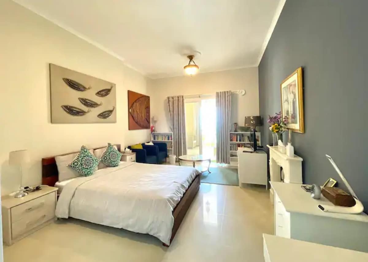Discover a perfect blend of comfort and elegance in this classy, fully furnished studio apartment located in Ras Al Khaimah City, UAE. Designed with sophistication, this open-plan space offers a king-size bed, cozy sofa bed, modern kitchenette, and private balcony with stunning views. Guests enjoy access to resort-style facilities including a pool, gym, and outdoor playground — all within a secure, peaceful community near the beach.