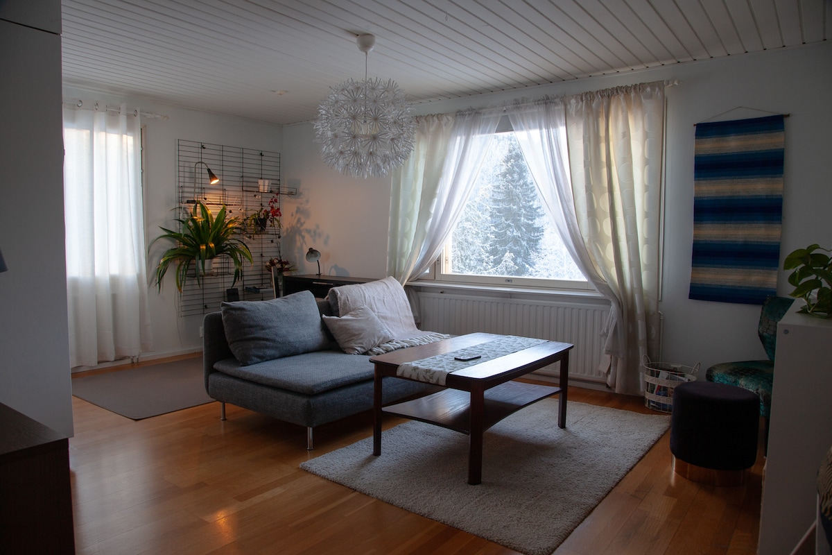 Viehättävä kaksio puurivitalossa