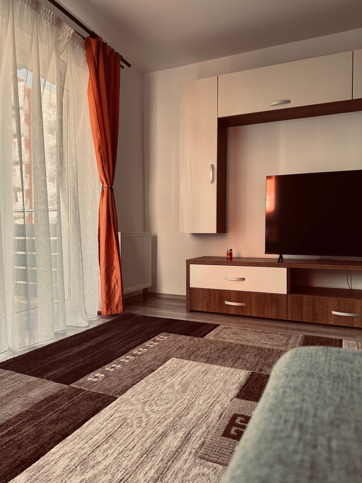 Modern and cozy apartment for up to 4 guests, located just 5 minutes from Brașov Airport. Perfect for a couple or a family with 2 children, it offers a peaceful atmosphere while being close to everything you need—shops, restaurants, and tourist attractions. Enjoy comfort, quiet, and convenience in one place. Whether you're here to relax or explore, this is the ideal starting point for your Brașov adventure.