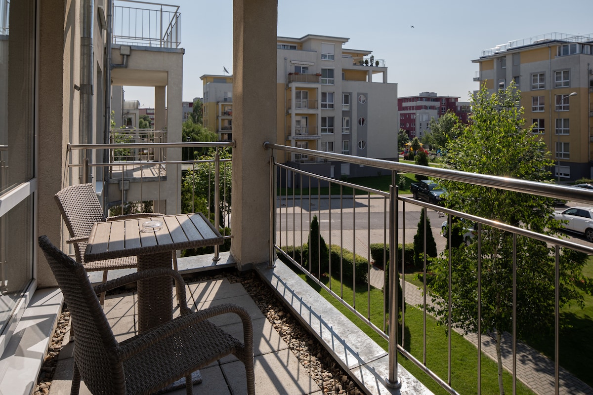 Va asteptam cu o garsoniera moderna , mobilata si utilata complet , AC, Smart TV , masina de spalat rufe , parcare, toate pentru un confort cat mai mare . Jaluzele electrice la geamuri , toate sunt facute pentru a va simti cat mai bine in locatia noastra. La 2 min aveti mai multe magazine si restaurante , Mega Image , Lidl, Penny. Va asteptam cu drag!