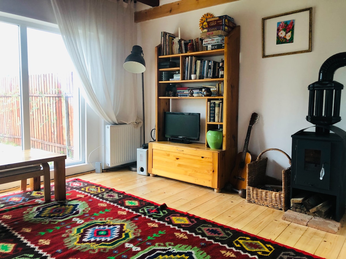 First floor studio with a nice terrace, located in a quiet area with a large open space room and a joint kitchen. This cozy and comfortable studio is fully furnished to the last detail as it was recently fully renovated. The place is perfect for families with children, couples or groups of friends. Coffee can be served on balcony while watching the stunning mountains. Easy walking distance of 10 mins to Bradu Ski Slope and close to the historic city Brasov (10 km).