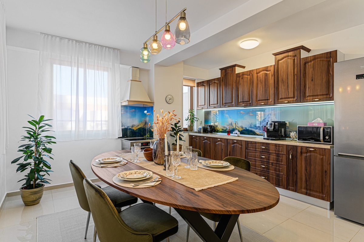 Loft Brașovia in Brașov offers a spacious apartment with two bedrooms and two bathrooms. The living room features a comfortable sofa and a TV, ensuring a pleasant stay. Free WiFi, a terrace, and a hot tub. The fully equipped kitchen includes a washing machine, providing convenience for all needs. The property provides private check-in and check-out services, a lift, outdoor seating area, family rooms, full-day security, and barbecue facilities. Free on-site private parking is available.