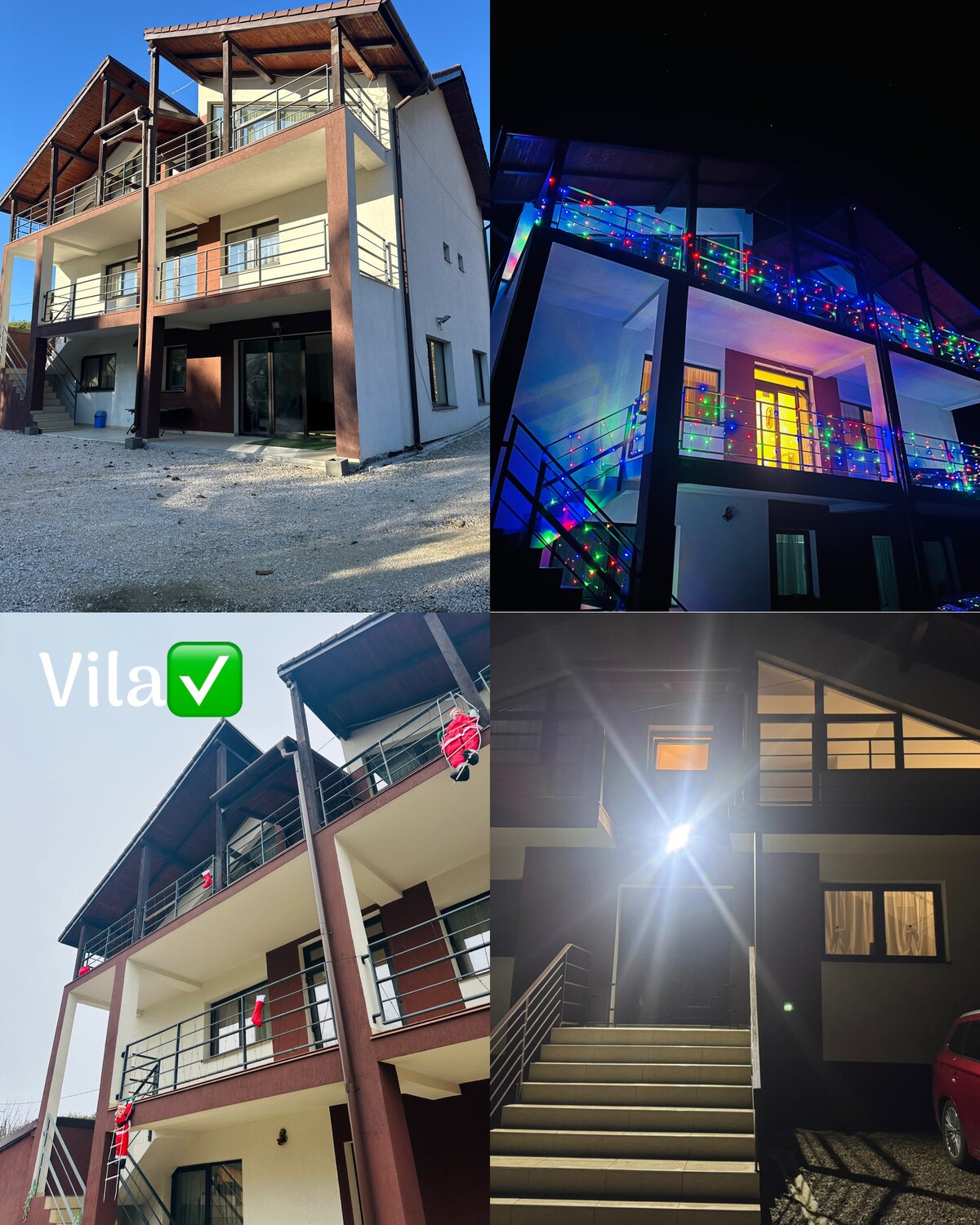 Pensiunea Darma Rasnov oferă spre inchiriere 9-10 locuri de cazarea in 4 camere- 3 camere duble si 1 camera tripla-la etaj, parterul este format dintr un living spatios , un colt de bucatarie complet utilata si o baie de servici iar la demisol este o masa de biliard si cateva aparate de miscare pt a va petrece timpul cat mai placut. Foișorul, grătarul , locul de joaca , spațiul verde, parcare, wi- fi fac sejurul mai relaxant si complet. Pt mai multe detalii nu ezitați sa ne contactați .