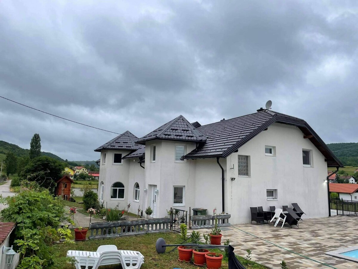 Bring the whole family to this great accommodation with lots of space for entertaining. The villa is luxuriously furnished, with 6 bedrooms, two living rooms, two bathrooms with toilet, one separate toilet, two kitchens, balcony, outdoor terraces, oven, two covered parking spaces and the possibility of additional parking in the yard. It is located 800m from the Una river and 1.7 km from the city center. Close to several shopping centers, gas stations, etc.