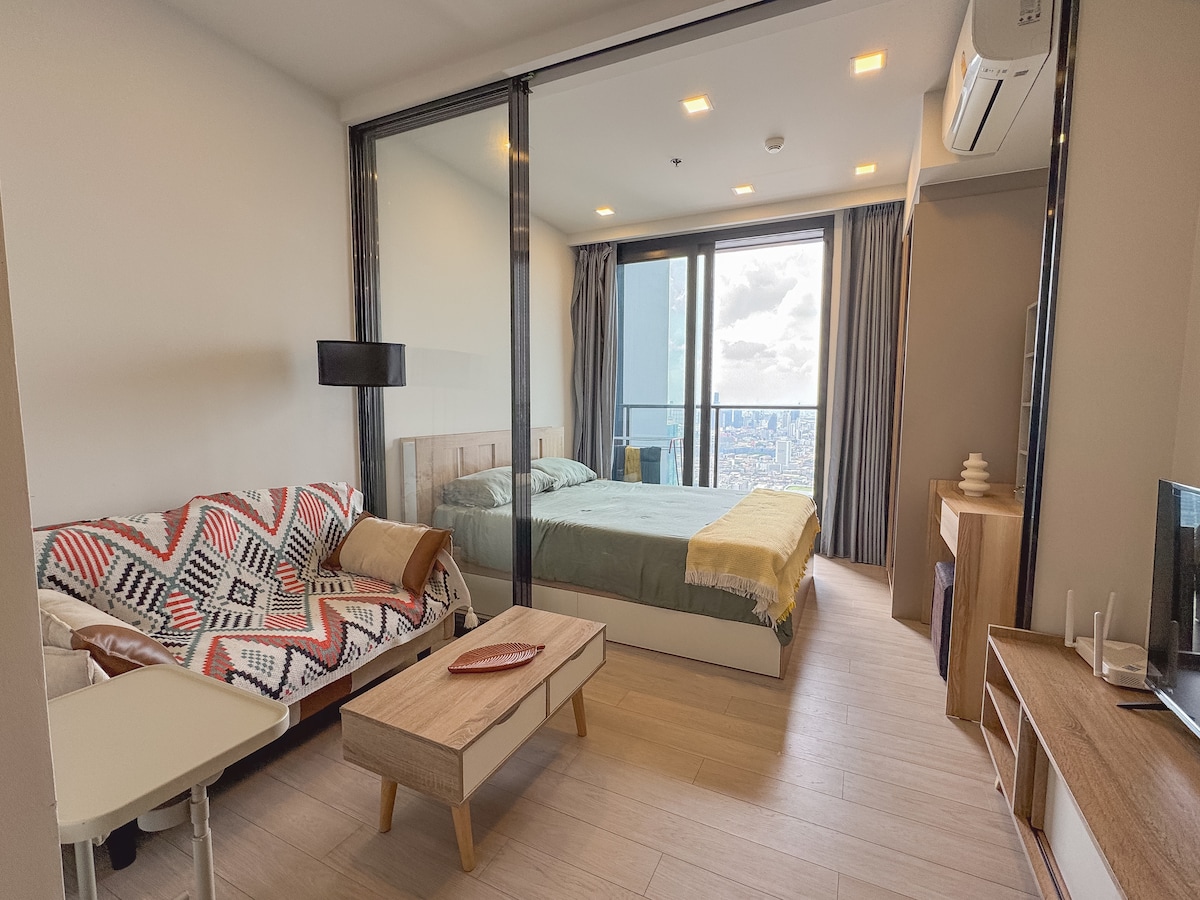 Welcome to your cozy urban retreat! This modern classy apartment offers the perfect blend of comfort and convenience. Chill out in the living room or bedroom, or cook up a storm in a fully equipped kitchen with an electric stove and microwave. With TV for entertainment and gorgeous views of the city skyline , it is our hope that you will feel utmost comfortable. Enjoy easy access to building amenities with the On Nut BTS and major shopping hubs like Tesco Lotus and Big C nearby.