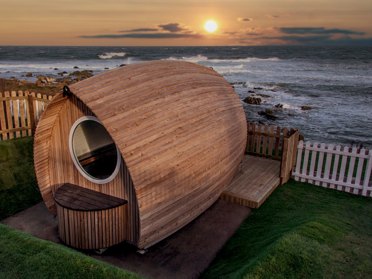 Door to the Shore is a modern day equivalent of a Bothy made from upturned boats used by fisherfolk as housing, situated 2 meteres from the slipway into this ancient harbour in Pitullie named Craighaven harbour. It is a luxurious Eco Pod crafted in the style of an upturned boat made from Larch Wood. It has underfloor heating, , a wetroom, smart tv, wifi, surround sound, wireless phone charger and iPhone docking station, kitchenette and contains the finest in bedding and appliances.