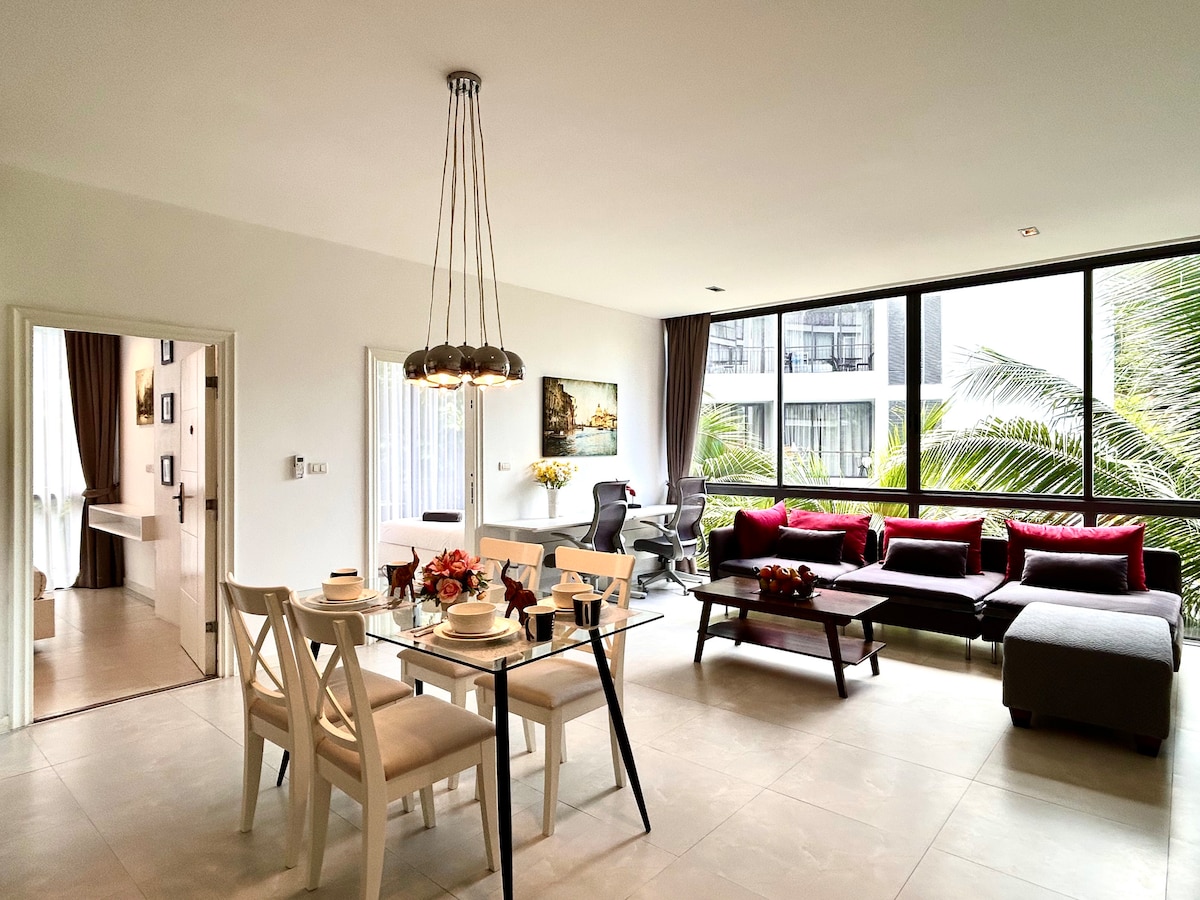 Spacious and modern 2-bedroom, 2-bathroom apartment near the heart of Phuket Town. Comfortably hosts up to 4 guests, with a cozy sofa bed in the living room—perfect for a family to unwind on after a day of exploring. Enjoy a fully equipped kitchen, stylish living area, and all the comforts of home. Located close to Chillva Market, Phuket Old Town, and top local spots, this apartment is an ideal base for both short and extended stays on the island.
