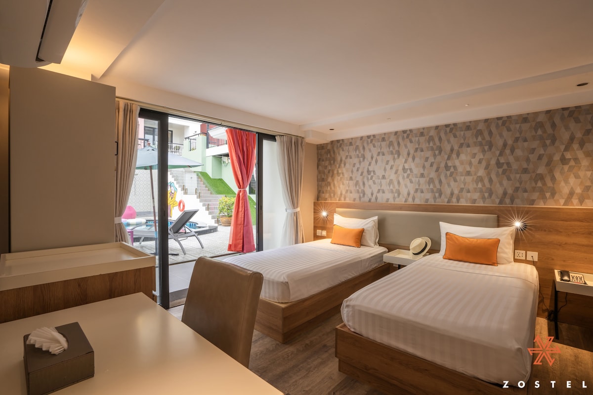 舒适的双床卧室:Niece旅舍-邦涛海滩