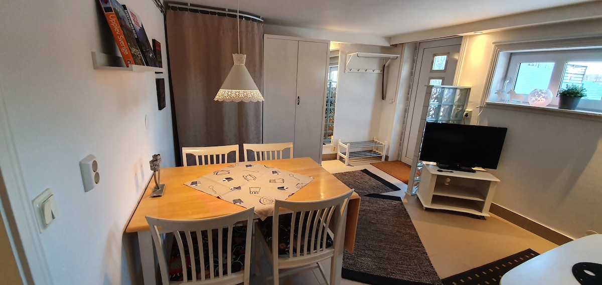 Hyr vårt poolhus! Nybyggd ”lägenhet” om ca 25 kvm med rymlig hall, badrum med tvättmöjligheter och rum med kök, soffa och 160 cm säng. Sängkläder och handdukar ingår ni behöver ej ta med egna. Parkering direkt utanför ingår. Ni kan förvara era skidor eller cyklar i låst utrymme om ni önskar. Ca 800 m till Lugnets friluftsområde med längdspår, badhus, cykelleder och högskolan Dalarna. 3 min biltur till stadskärnan och matbutiker.