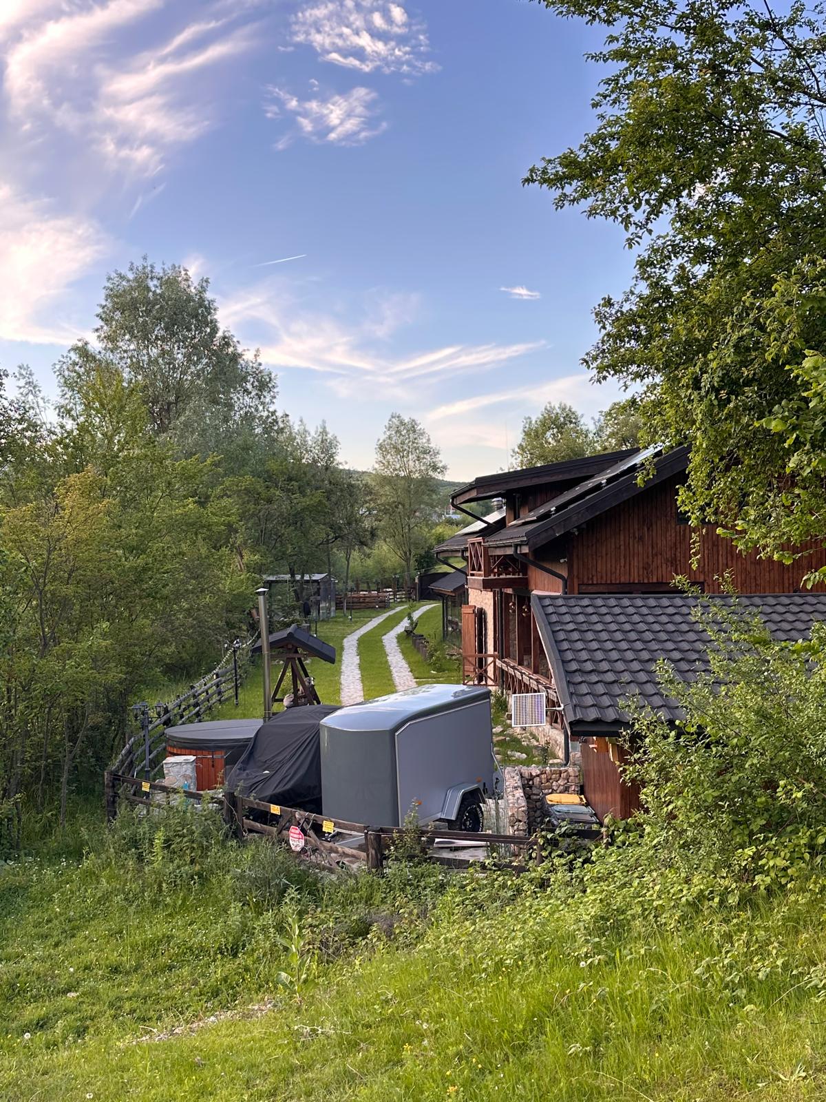 🍀Avem 3 căsuțe utilate sa îți asigure confortul maxim, plus o zona comuna cu bucătărie, grătar și tot ce ai nevoie. 🌿Bucură-te de sunetele naturii când stai în această locuință unică. 🏞️Evadezi din oraș și te relaxezi departe de tot! 🎗️Vino cu familia sau gașca ta de prieteni și aici vei fi departe de ochii curioșilor în intimitatea voastră! 👉🏼Ciubărul cu fibră de sticlă este inclus în preț si îți va oferi o experiență unică.
