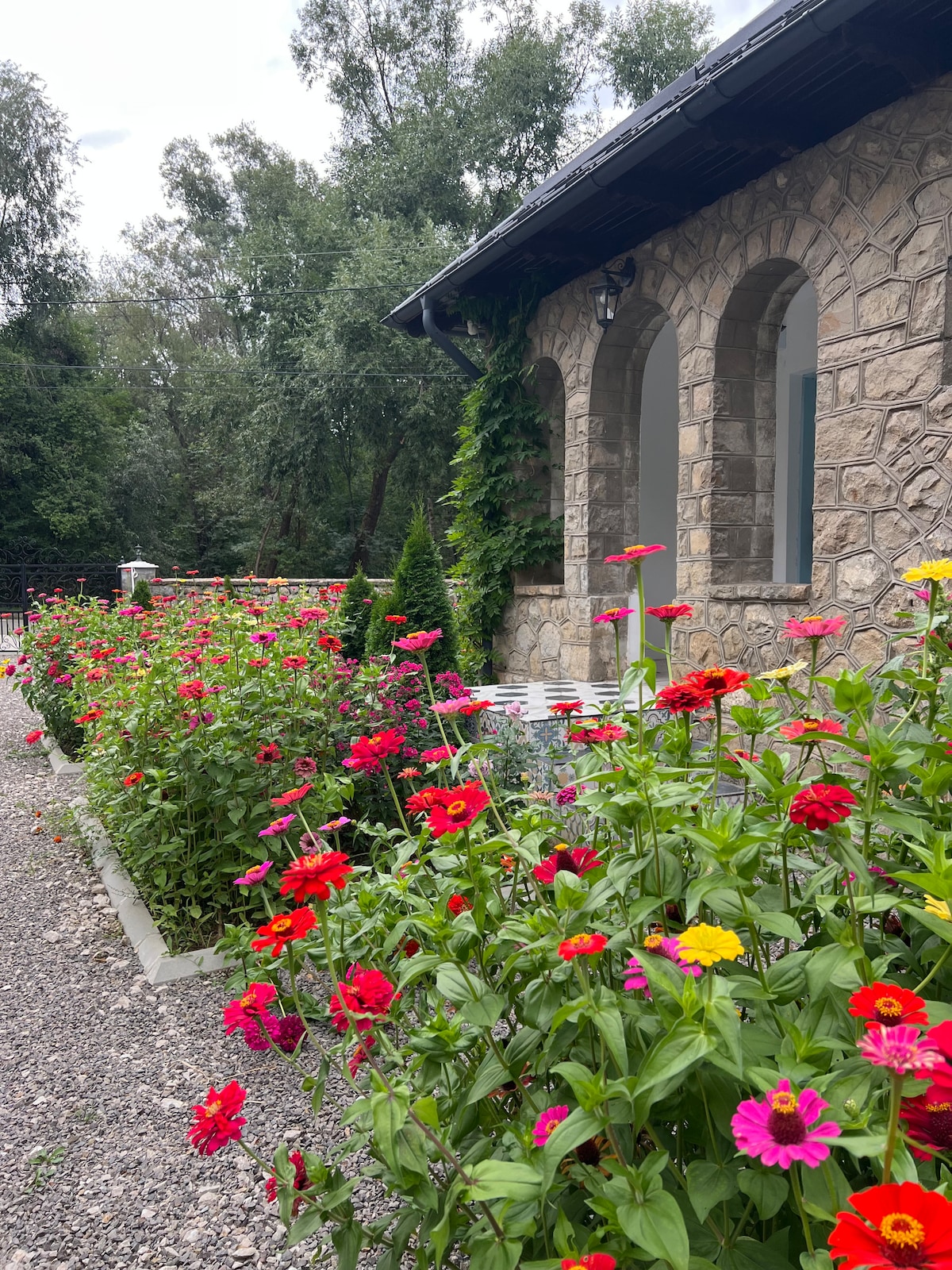 Our lovely country cottage is located on a 15000 sqm garden and consists of 3 separate small houses, with 4 bedrooms, a living room, a fully equipped kitchen, a barbecue, and individual bathrooms in each house for more comfort. The cottage is decorated in the authentic Transylvanian style with respect to local culture. At the border between Transylvania and Muntenia, it offers easy access to both Bran, Sinaia, and Brasov area as well as the south of Romania.