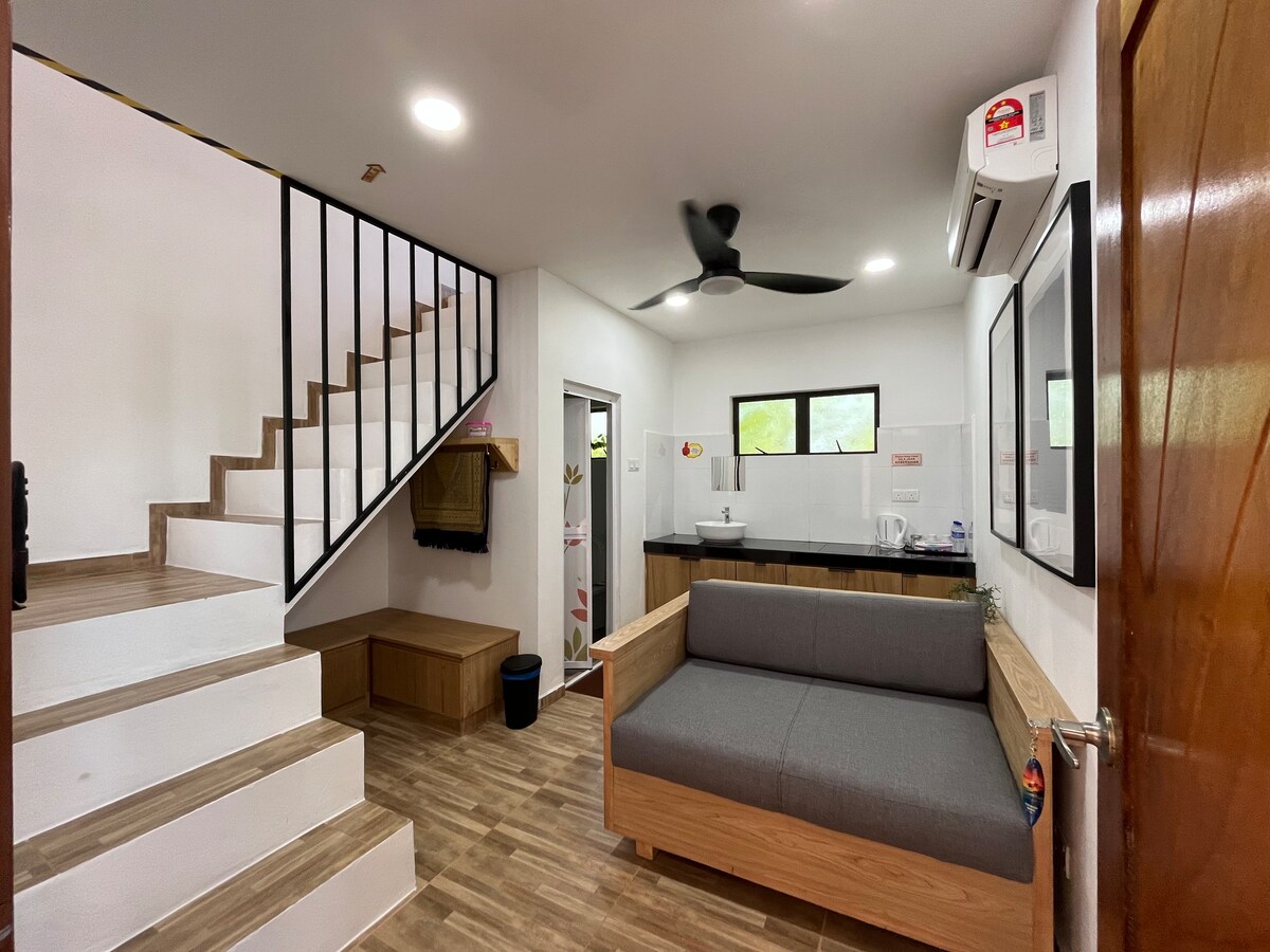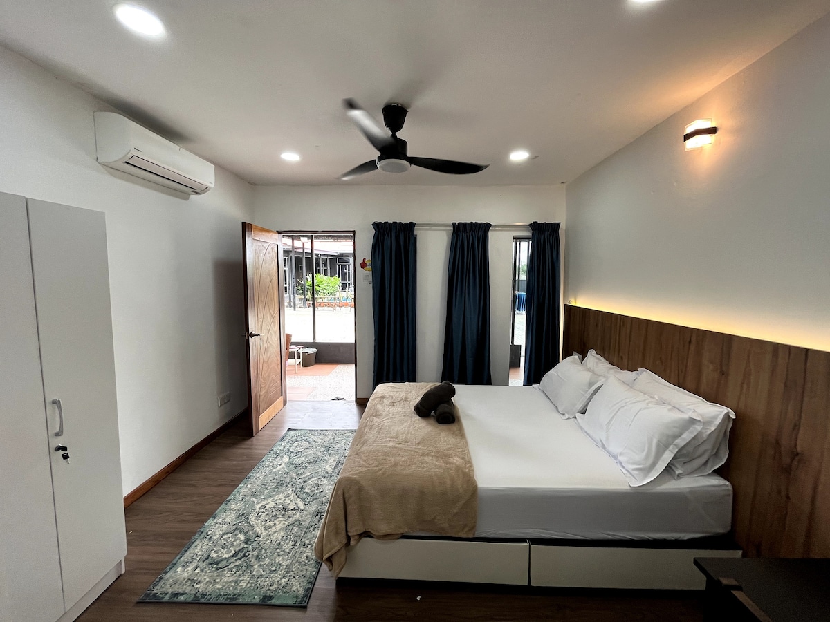 舒适双层排屋,车程3分钟即达文冬市中心。全屋冷气,设有4房3厕,可容纳12人以上(可加床)。配备Spinal Pro & Plus床垫、K歌系统、热水器、饮水机,提供舒适与娱乐享受。设有私人停车位(可停2辆车)与自动门,安全便利。支持24小时自助入住,适合家庭或朋友聚会。 Cozy double-storey house, only 3 mins' drive to Bentong town. Fully air-conditioned, 4BR/3BA, sleeps 12+ (extra beds available). Features Spinal Pro & Plus mattresses, karaoke, water heaters, dispenser, private parking (2 cars), auto gate & 24h self check-in.