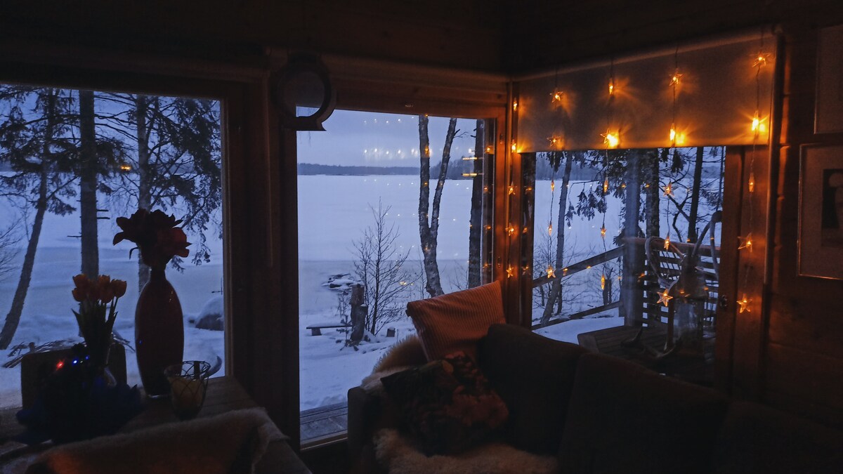 25 m2:n merenrantamökki rentoutumiseen. Tie perille, sähkö, ilmalämpöpumppu, televisio, Wi-fi, bluetooth-kaiutin, puusauna, takka, jossa paistinuuni, kahvin- ja teenkeitin, kaasu-, sähkö- ja hiiligrilli sekä nuotiopaikka, sähköinen keittolevy, jääkaappi. Juoma- ja pesuveden tuon säiliöissä mökille. Biolanin ulkohuussi. Hyvät ulkoilumaastot. Puusauna, jossa pesumahdollisuus. Ja kuten tuolla edellä lukee, ei vesijohtoa eikä suihkua. Sänky on VAIN 120 cm leveä.