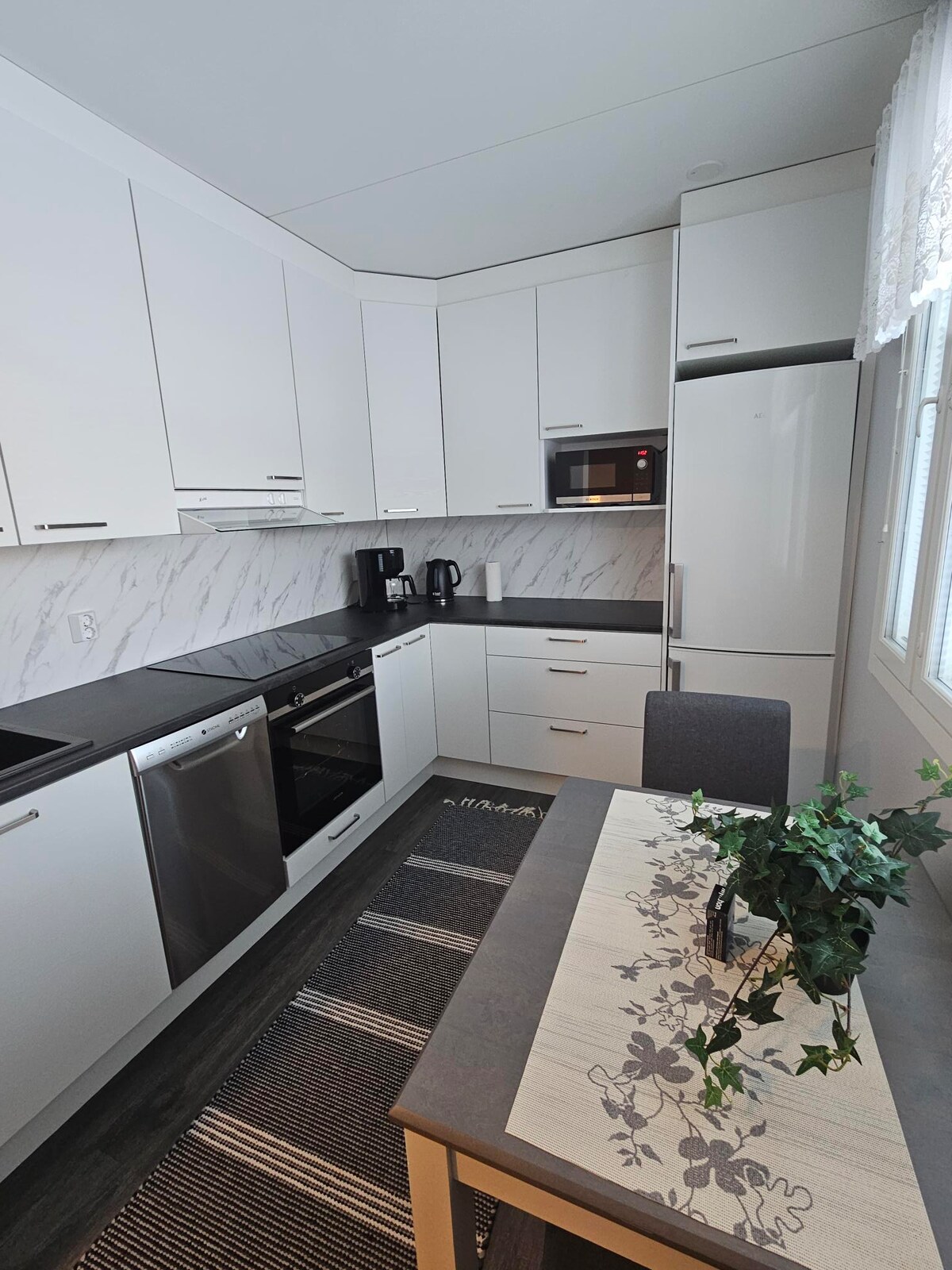 Hyvällä maulla sisustettu valoisa uusi kaksio aivan kauppakeskus Puuvillan vieressä. Asunnon sijainti on hyvin keskeinen mutta kuitenkin ilman liikenteen melua. Keskustaan n.1km, Kirjurinluotoon 900m. Huoneistossa on kaikki tarvittavat kodinkoneet sekä kuivaava pyykinpesukone. Parivuode ja kahden hengen vuodesohva. Tarvittaessa käyttöön saa lisäksi varavuoteen yhdelle. Huoneistossa 55 tuumainen TV, radio ja Wifi/valokuitu. Viihtyisä patio pihakalusteineen ja autopaikka pihassa.
