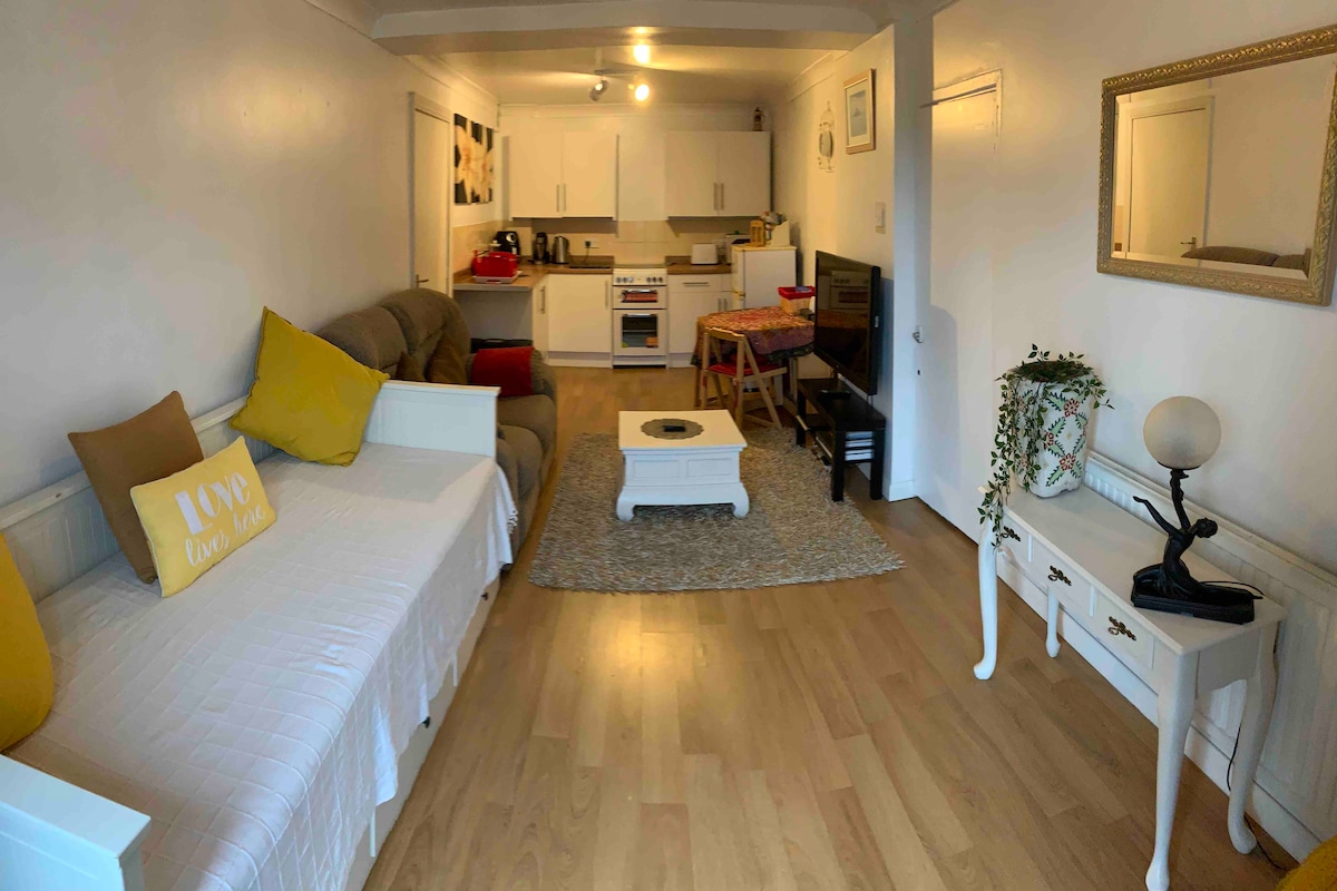 A unique and very quirky Studio Apartment (c. 500sq ft) set in a very tranquil and peaceful location, and yet with barely 1 mile Walk to the nearest breath taking bay that is Langland on the Gower Peninsula, which follows on to Caswell Bay and many other outstanding Beaches along a truly breathtaking coastal path. The lovely Village of Mumbles is also only a stroll down the road, bustling with some lovely boutique shops, coffee shops and wine bars.