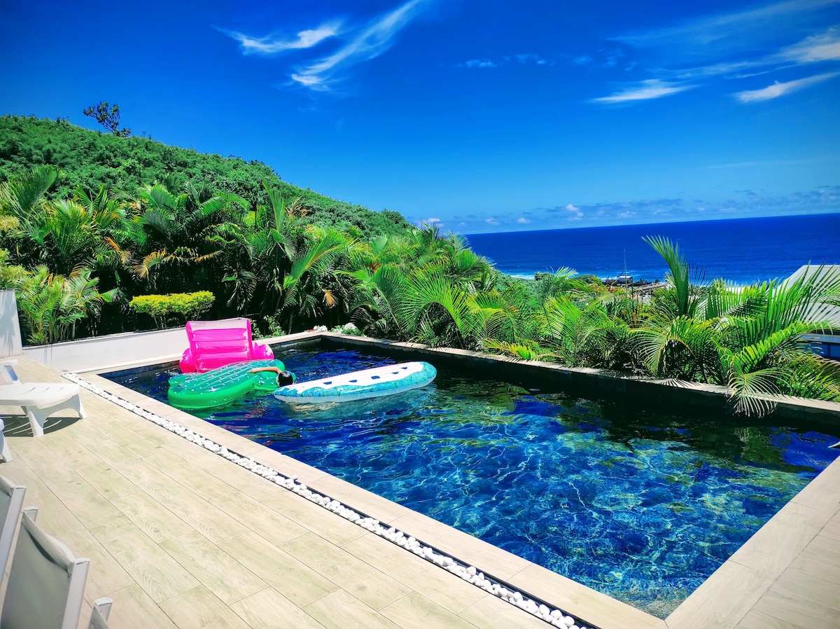 Kaz Les Manguier 恒温游泳池,迷人的海景