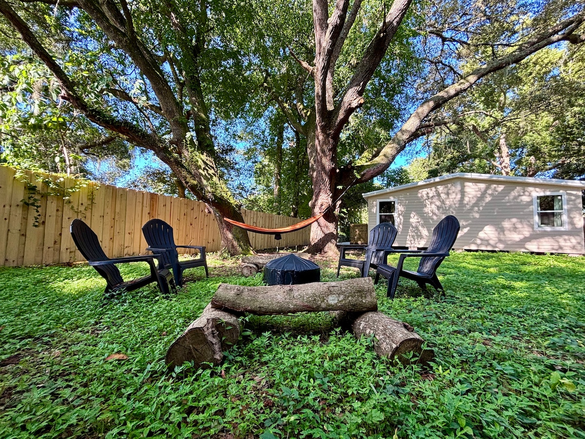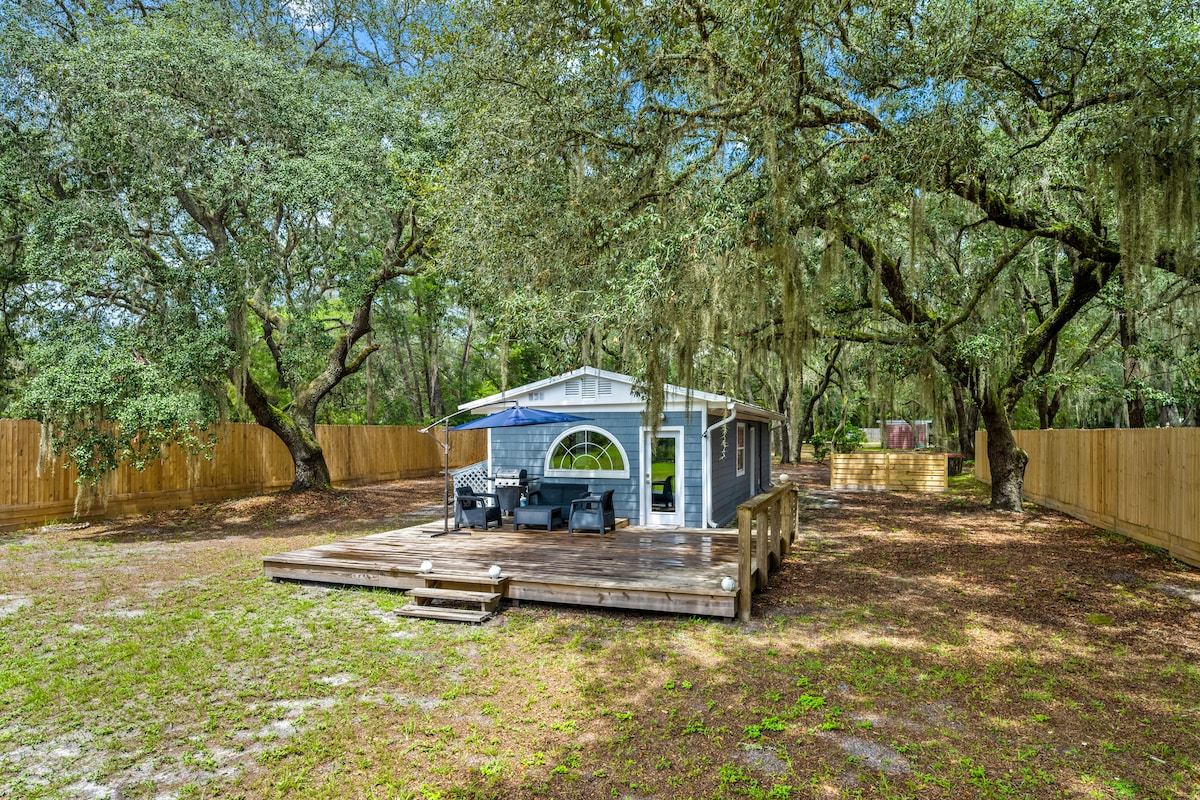 Enjoy stunning lake views while sipping your morning coffee on the back deck. Lots of paddling options exist here on spring-fed Sand Lake. Hosts offer a paddle boat, canoe, and paddle boards for your enjoyment. Practice yoga on your own private deck, fish from the dock, or star gaze around the campfire each night. Discover nearby Florida Springs and beaches all within 30 - 60 minutes. This 800 sq. ft cottage is centrally located between Gainesville & Saint Augustine. Netflix | Hulu | Wifi | BBQ