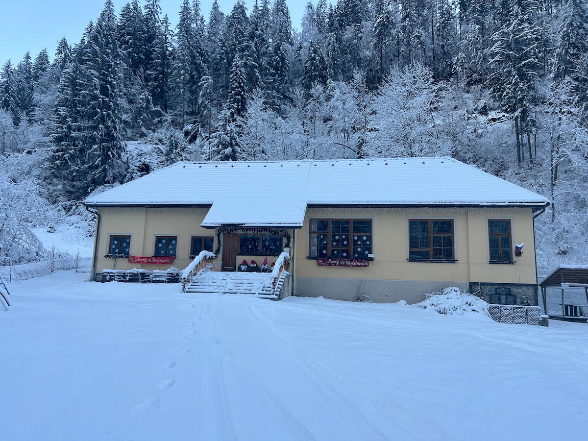 Apartma se nahaja v nekdanji šoli, kjer je bilo nekdaj tudi moje delovno mesto. Stavba, ki se nahaja na idilični lokaciji, obdana z gozdovi, reko in potoki, je dolga leta samevala, zato smo se z družino odločili, da ji damo življenje. V enem delu smo uredili 2-soben apartma s savno. Na lokaciji je igrišče s plezalno steno, kurišče in izvir pitne vode. V okolici so čudovite kolesarske in pohodne poti, obdani smo z najlepšimi koroškimi gorami.
