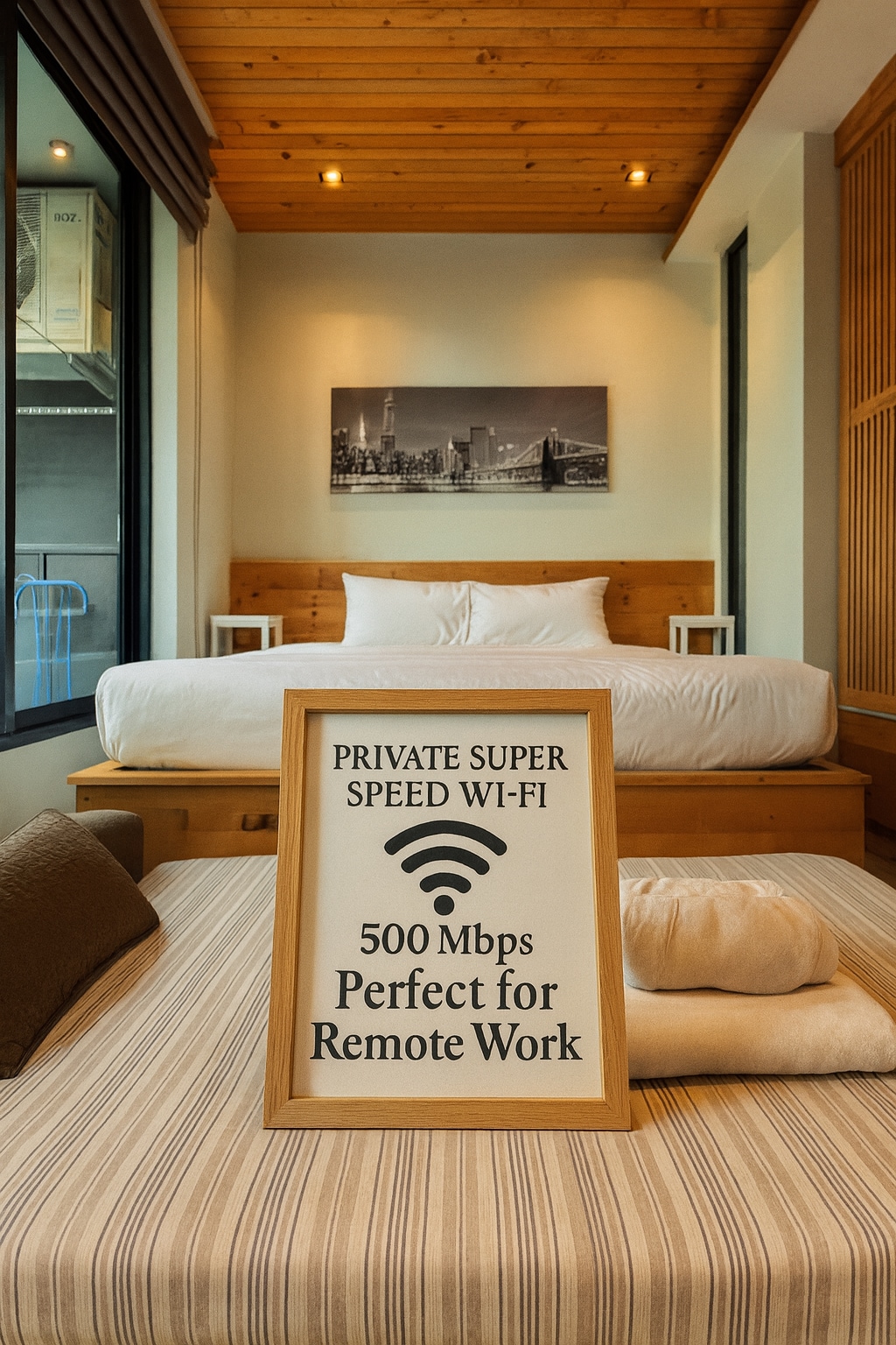 闹中取静,普吉巴东繁华黄金地段,无边双游泳池&健身房,温馨一室一厅带厨卫浴缸房间+24小时保安