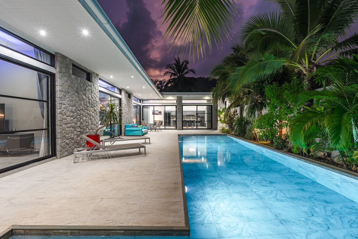 Villa de luxe au design moderne avec piscine privative, parfaitement adaptée à votre séjour en famille ou entre amis. Située dans un quartier paisible, proche de toutes commodités, et des plages de Rawai et Naiharn, cette somptueuse villa dispose d'une piscine entièrement recouverte de marbre, et dotée d'un systeme de filtration à eau salée. A l'intérieur, vous disposerez de 140 m2 repartis en un grand salon ouvert sur une cuisine toute équipée, ainsi que 3 chambres avec salle de bain privée.