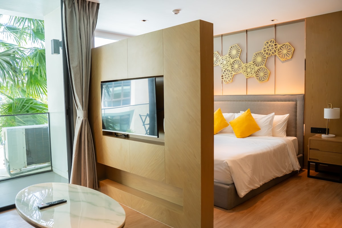 Location – Nai Harn Beach Located just a short walk from restaurants, cafes, and shops, and only 10 minutes from the serene Nai Harn Lake and the stunning Nai Harn Beach. The apartment features 1 bathroom, a separate bedroom, and a living area with a comfortable sofa that converts into a bed, ideal for up to 4 guests (best suited for guests of average height or below). Note: This is private property, and electricity and water are charged separately. Electricity: 6 THB/unit Water: 45 THB/unit