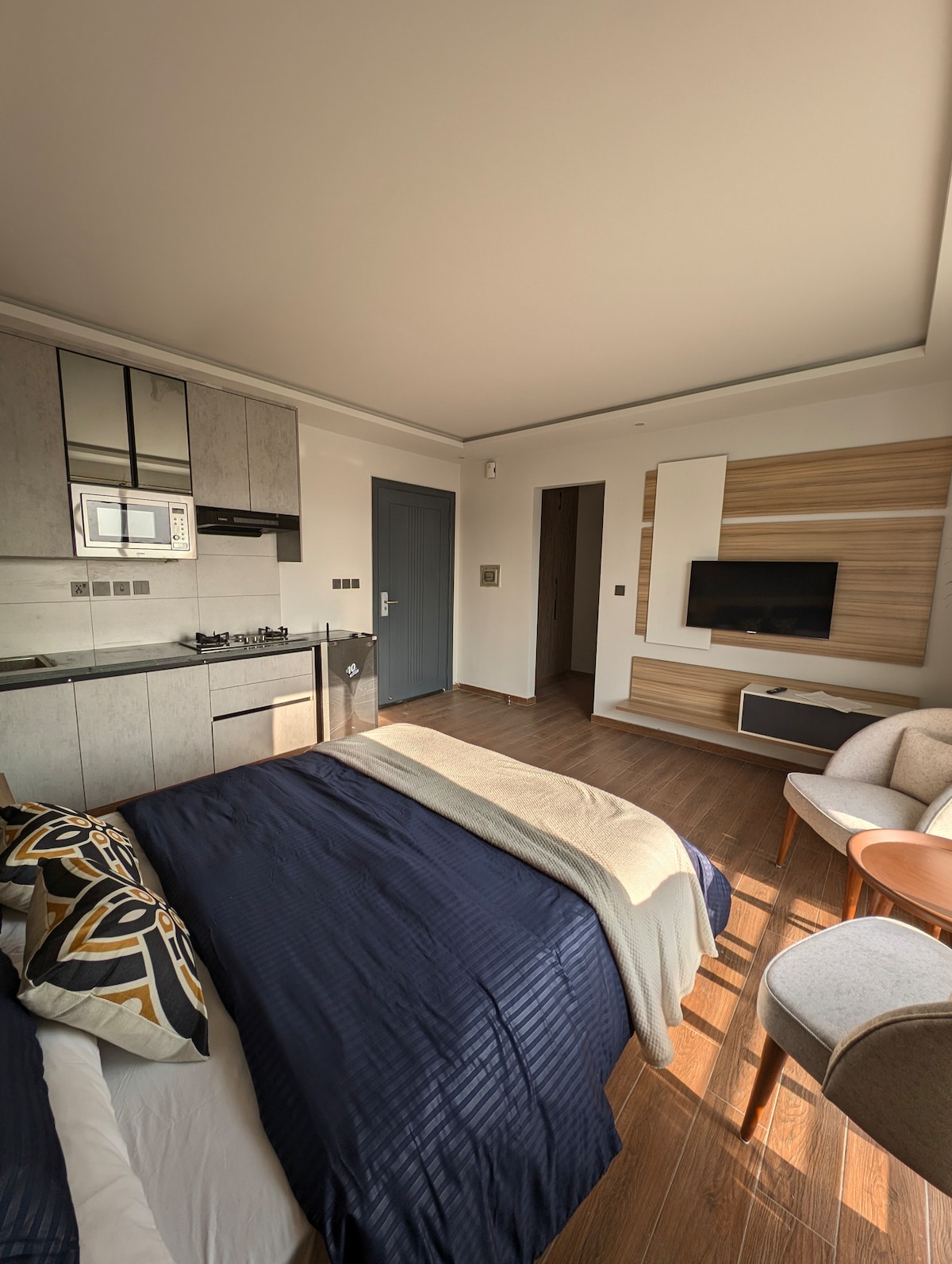 Comfy studio apartment in The Holton, Bahria Town Phase 4. Ideal for solo travelers and small families, this modern and comfortable space features high-speed Wi-Fi, air conditioning, and a fully equipped kitchen. Located near Giga Mall, DHA Phase 2, GT Road, and Bahria Phase 7, with easy access to dining, shopping, and parks. Whether for work or leisure, this well-designed studio offers a peaceful and convenient stay.