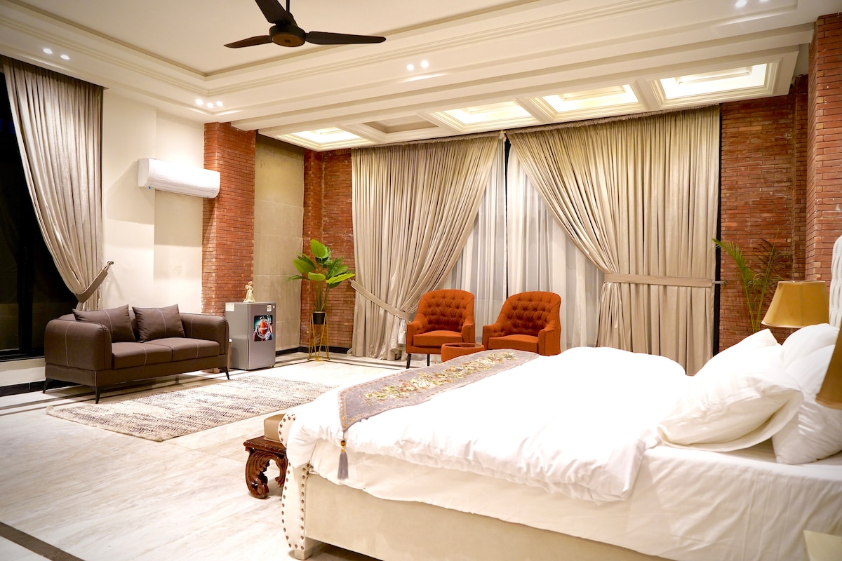 Stay at one of Islamabad’s most prestigious location -an exclusive, luxury 3-bedroom private unit set on a grand 2 Kanal residence right on Main Margalla Road, F-8/2. This address is truly unmatched, a rare gem that offers both convenience & prestige. Enjoy your own green private gardens, perfect for gatherings, morning coffee or unwinding in serene setting. With spacious surroundings & elegant, upscale interiors, this stay blends comfort, luxury, & the very best location Islamabad has to offer.