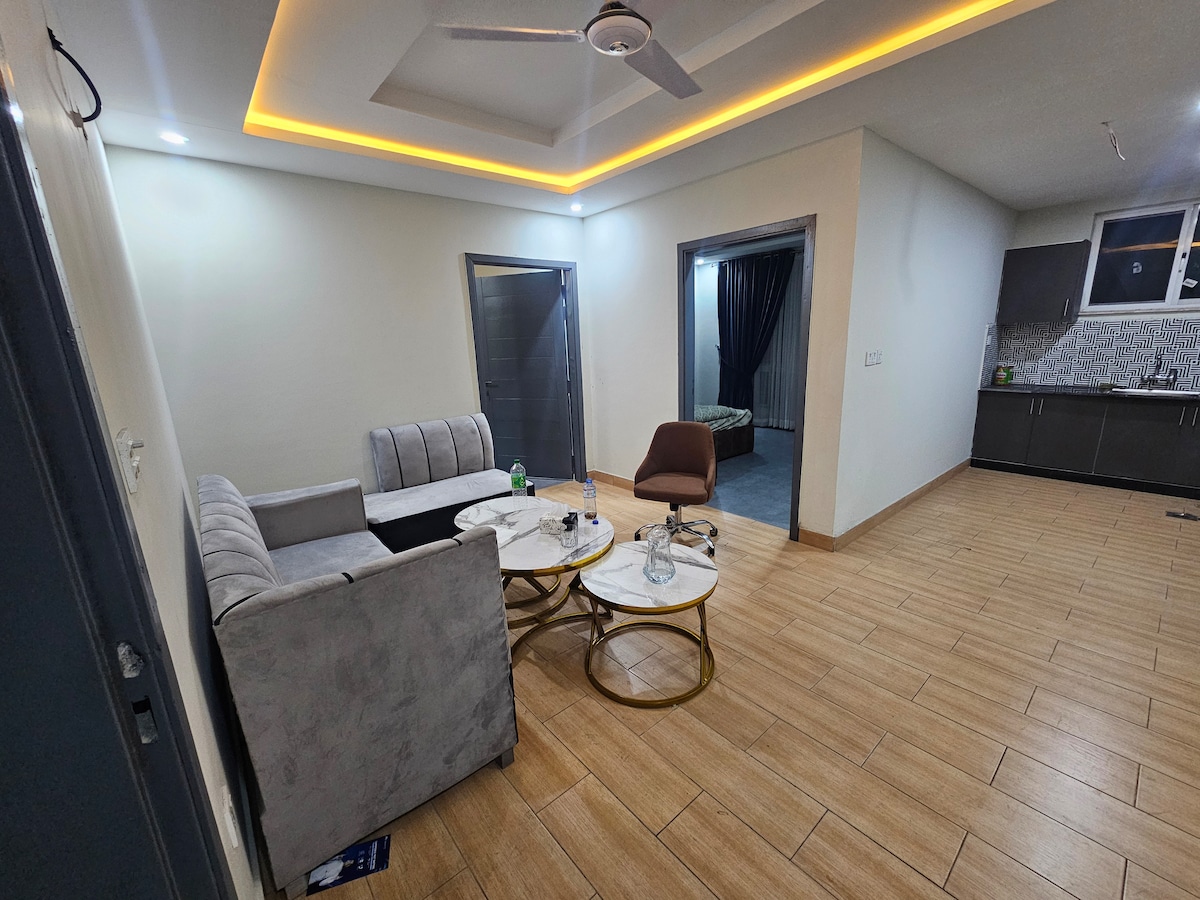 Discover our cozy one-bedroom apartment, perfectly located in the heart of Islamabad. Ideal for Families, couples, solo travelers, or business professionals, this stylish space offers comfort and convenience for your stay. ► Modern interiors: spacious bedroom, sleek kitchen, cozy living area. ► Building features Coffee Beans & Brim – dine-in or takeaway!. ► Amenities:High Speed Wi-fi, Free Parking, garden, 24/7 security. ► Family-friendly, centrally located – everything at your doorstep
