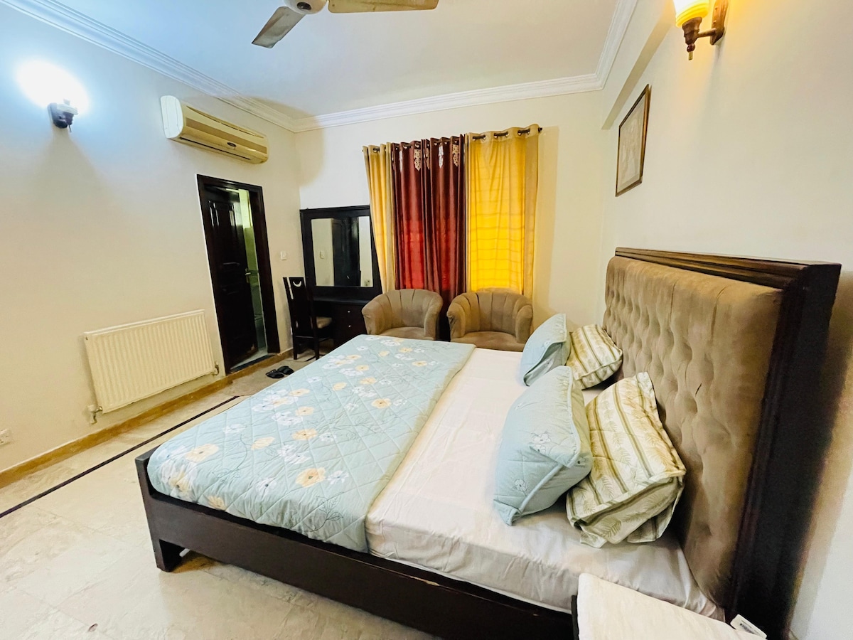 Located in Islamabad’s central G-9, this elegant 4-bedroom family home offers comfort, privacy and convenience. Featuring a modern kitchen, bright drawing room, full air conditioning, and immaculate interiors with fresh linens and spotless washrooms, it’s ideal for families or business guests. Enjoy a peaceful, secure stay with 24/7 security, ample parking, and easy access to markets, malls, and landmarks. A true home away from home,serene, clean, and perfectly located in the heart of Islamabad
