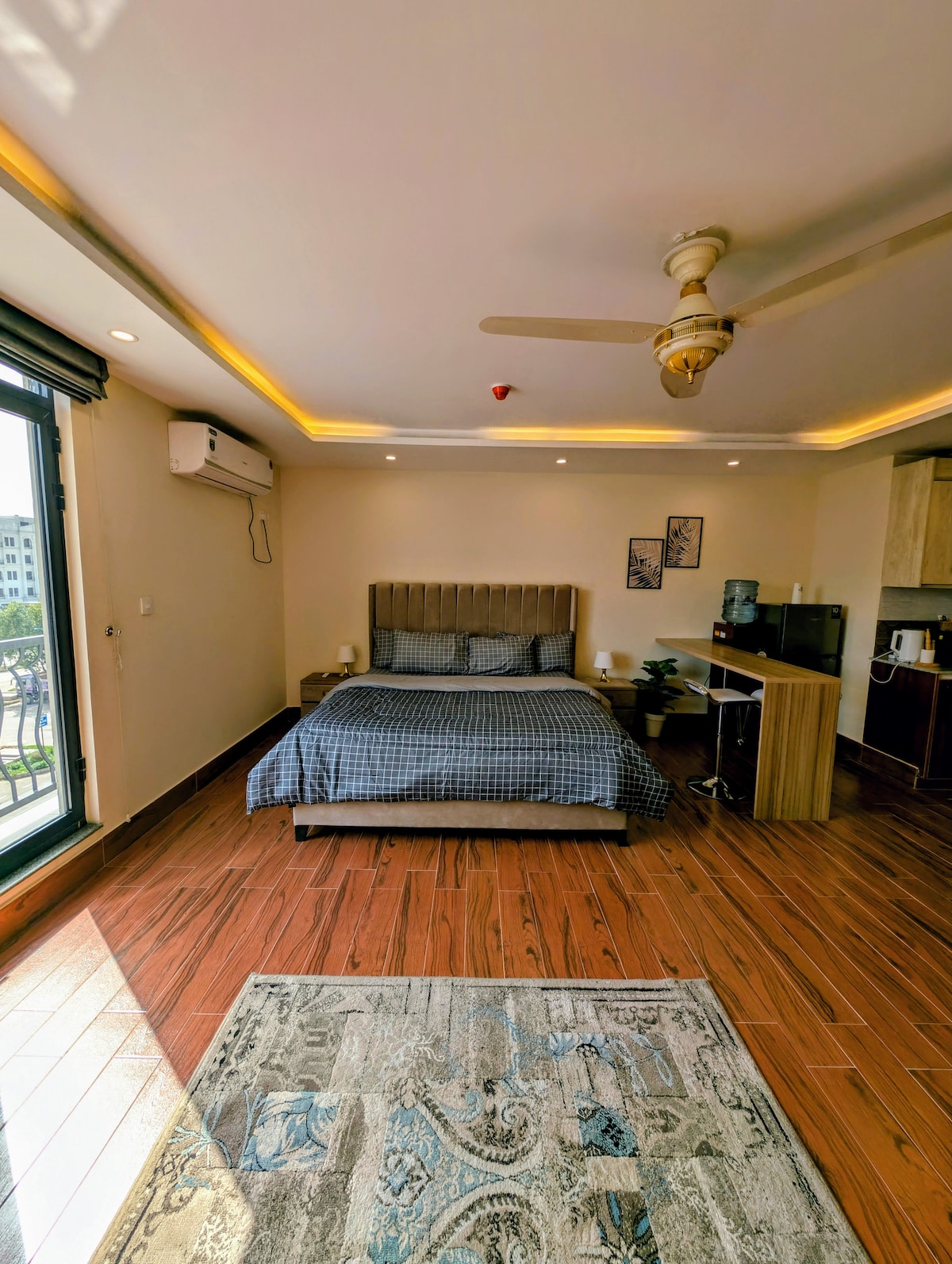 Cozy studio apartment in Pavilion 99, Bahria Town Phase 4. Ideal for solo travelers and small families, this modern and comfortable space features high-speed Wi-Fi, air conditioning, and a fully equipped kitchen. Located near Giga Mall, DHA Phase 2, GT Road, and Bahria Phase 7, with easy access to dining, shopping, and parks. Whether for work or leisure, this well-designed studio offers a peaceful and convenient stay.