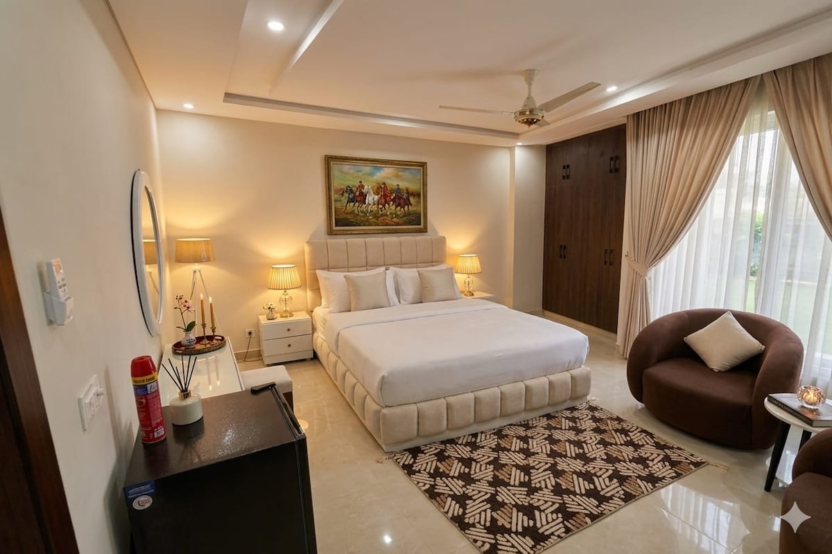 Step into Moonlight by fior, where modern luxury meets serene ambiance. This elegantly designed apartment features a spacious living area with sleek interiors, highlighted by a stunning moon-inspired wall light that creates a calming glow. The open layout includes a cozy lounge, stylish decor, and a contemporary entertainment setup. Perfect for unwinding, this space offers both comfort and sophistication for an unforgettable stay.