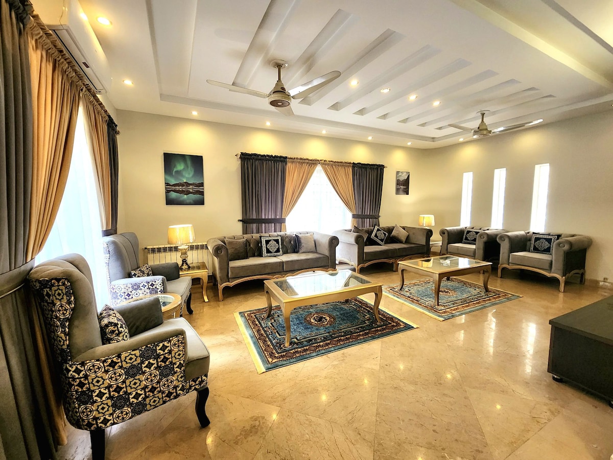 Welcome to our stylish two-bedroom suites in DHA 5 Islamabad. Enjoy the convenience of a quick commute and relax in a space featuring lovely decor and a fully-equipped home theater. Ideal for travelers seeking comfort and entertainment, this cozy retreat offers modern amenities in a prime location. It is a complete separate portion with it own separate entry and parking, family friendly, therefore very secure and peaceful. Parties & loud music is not allowed. Unmarried couples not allowed.