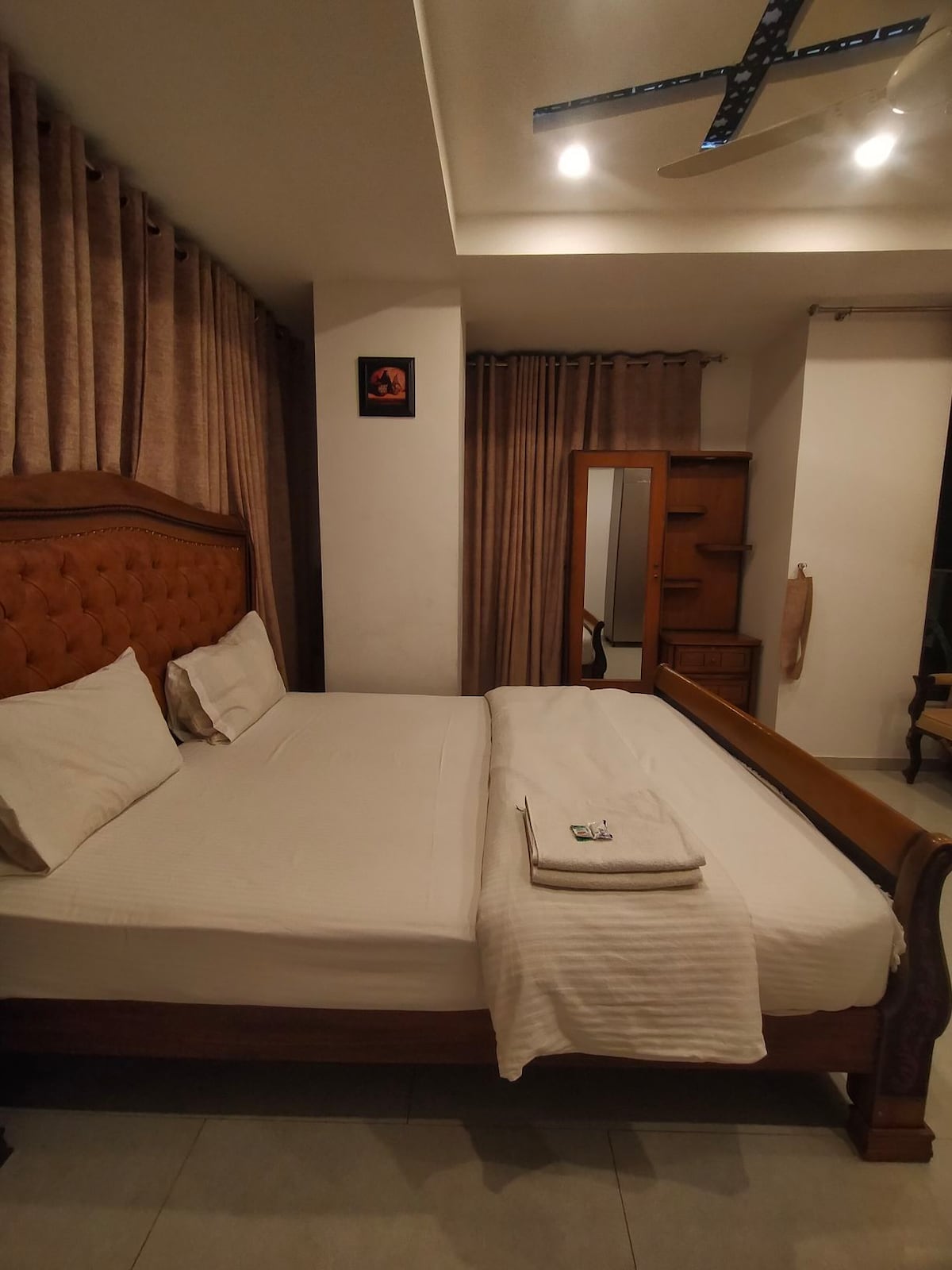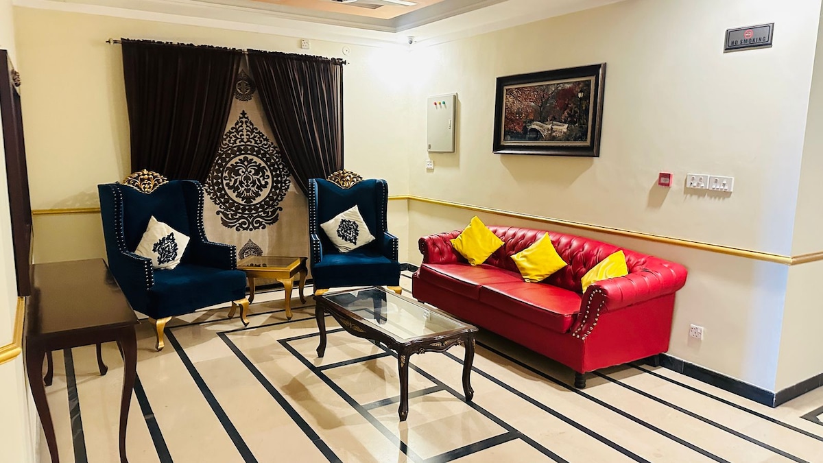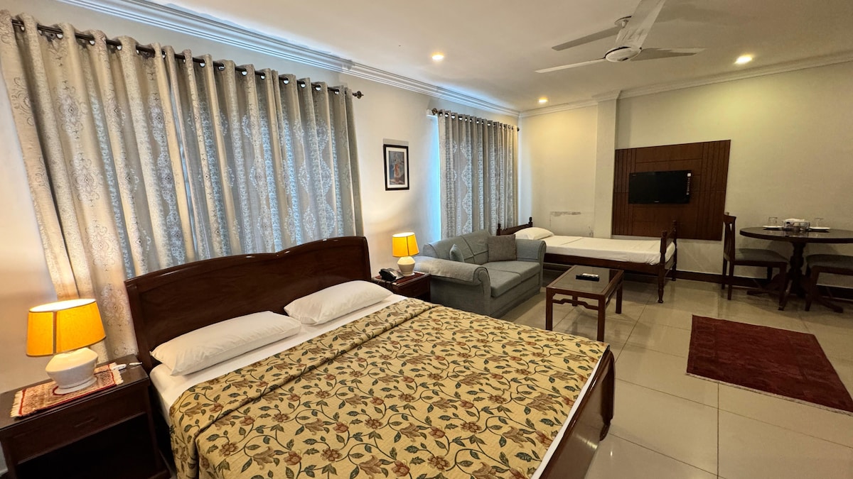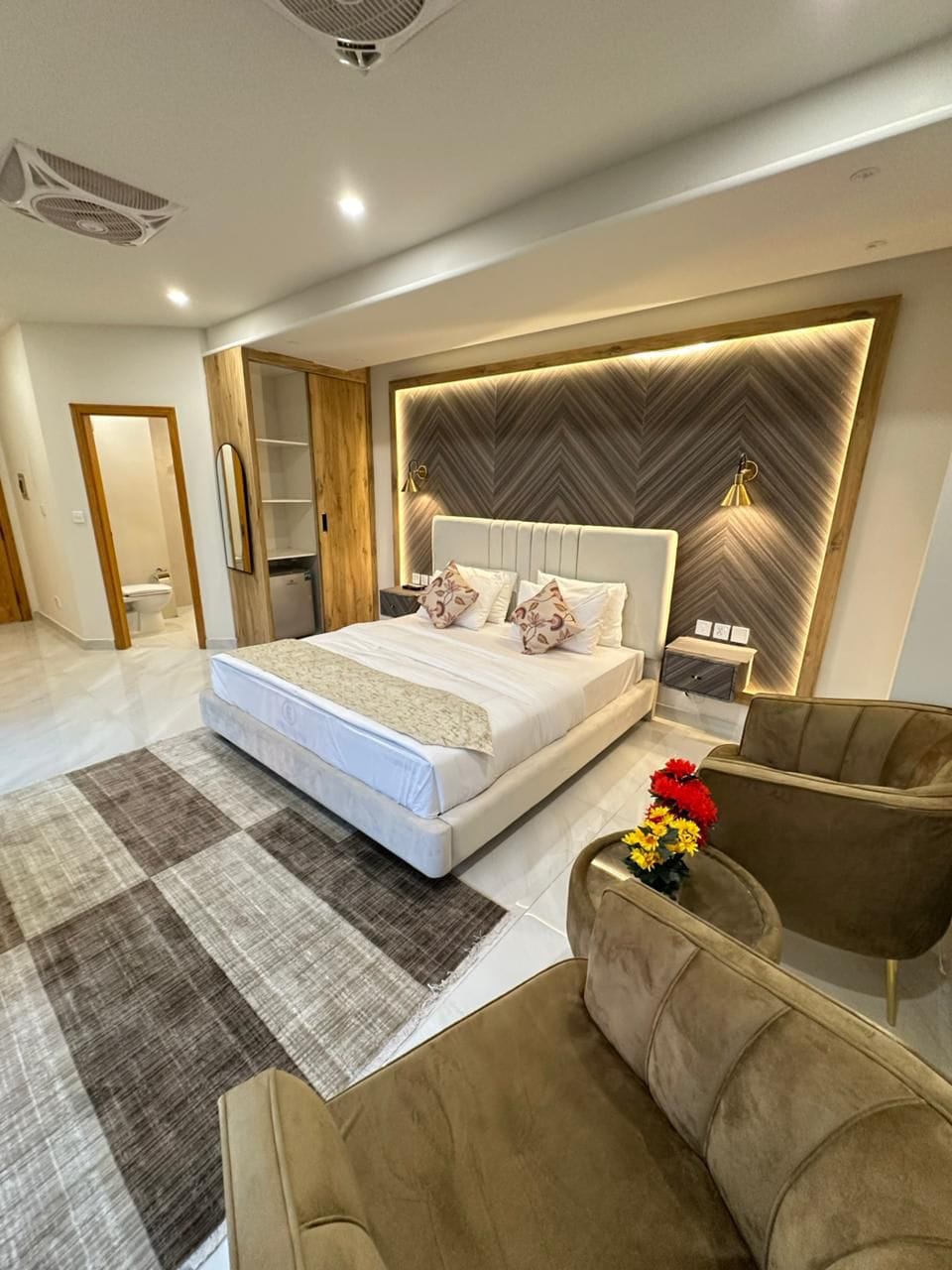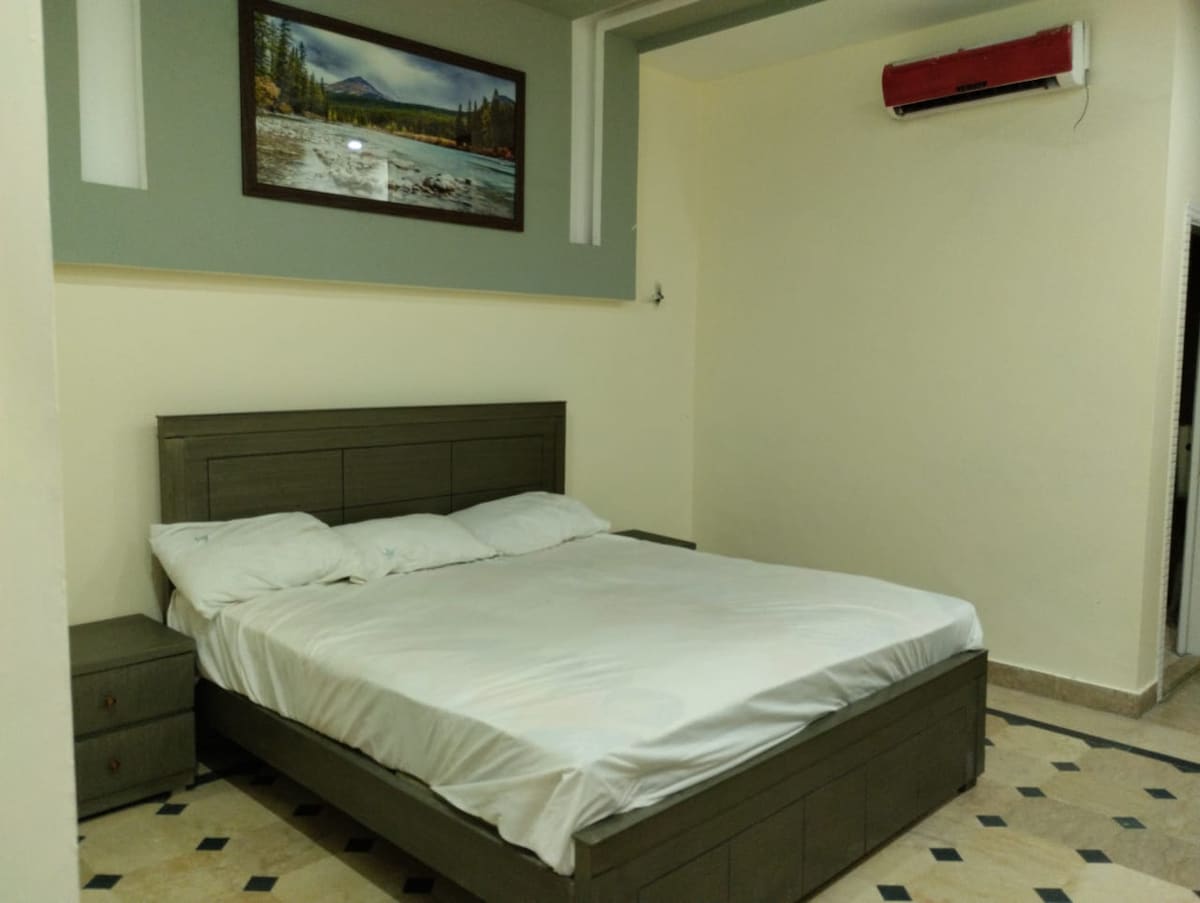 Welcome to the luxury suite, located in G7 Markaz, Islamabad. Our elegantly designed suite offers modern furnishings, a spacious layout, and a private attached bathroom with hot and cold water. Enjoy a flat-screen TV for entertainment and complimentary high-speed Wi-Fi. Start your day with a delicious breakfast for two, included with your stay. 24/7 reception. Conveniently situated near Centaurus Mall and Faisal Mosque, our hotel guarantees an unforgettable experience.