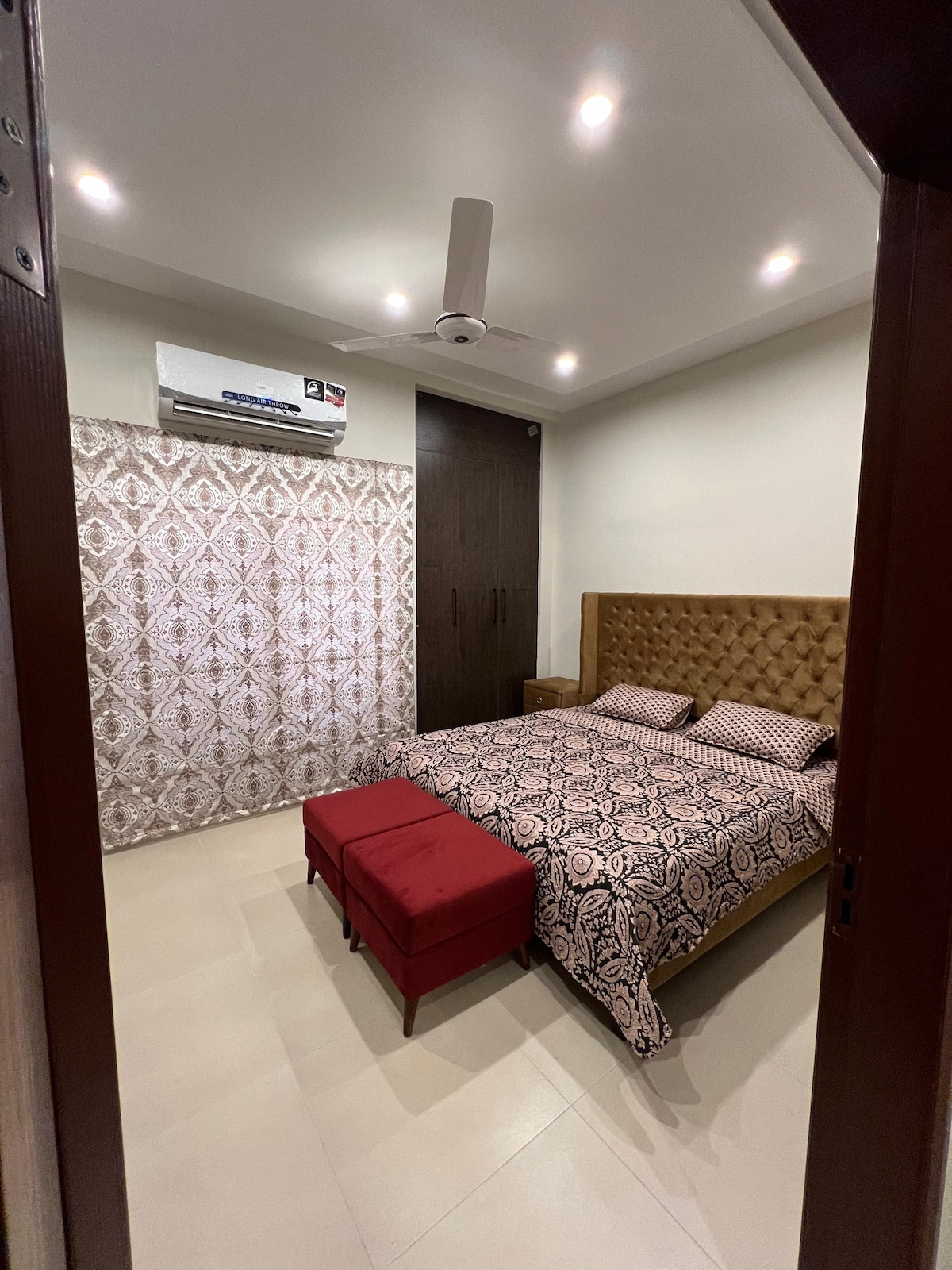 This Fully Furnished Apartment Includes: 4 Air Conditioners. Iron & Ironing Board Microwave Oven Refrigerator and Freezer Cutlery Set Soft Drinking Water Electric Kettle High-Speed Wi-Fi. Flat-Screen TV. Cold Water kitchen and bathrooms. Regular Cleaning Service. Indoor Games. Air Fresheners. Tea essentials. Comfortable bedding and linens Towels and basic toiletries Cookware (pots, pans, utensils) Dining table and chairs Wardrobe and storage space & more…