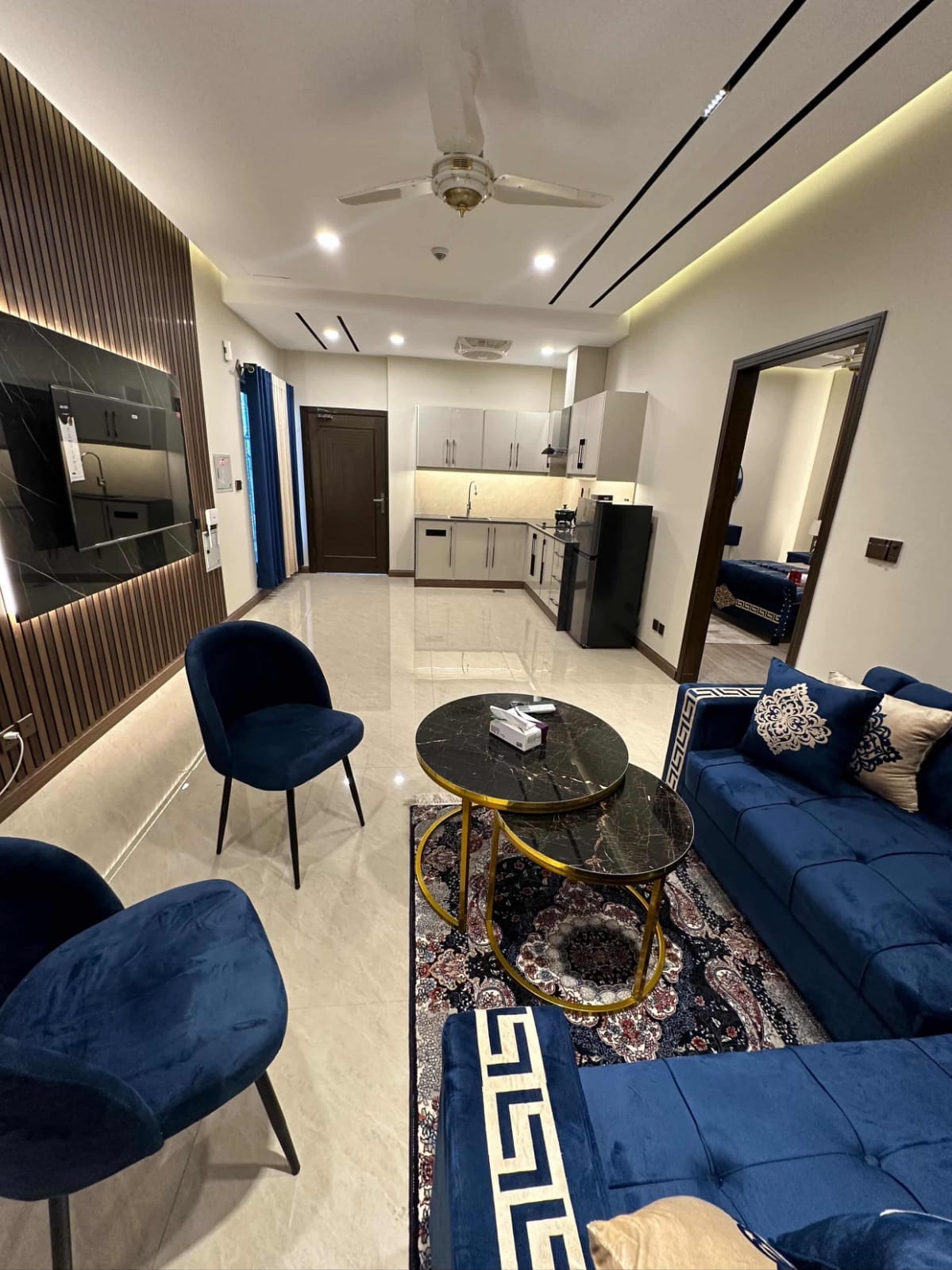 Welcome to The Royal Residence—A Stylish and modern living experience, located in Bahria Town, Rawalpindi, this stylish apartment features a subtle living area, a kitchenette, and a comfortable queen-sized bed for a relaxing stay. Living Perks ⦿24/7 heating & cooling (inverter) ⦿Free Snacks ⦿Balcony Location Perks ⦿1 minute walk to KFC, McDonald’s, Subway, Pizza Hut and all famous food chains. ⦿Secure building with 24/7 security *Only for friends and families* *Unmarried Couple Not Allowed*