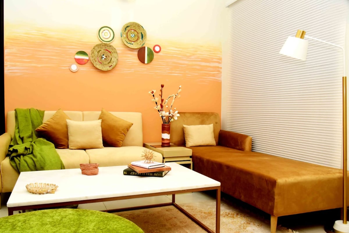 Welcome to Maskan Dens, your luxury home away from home. This stylish designer 1-bedroom suite in Bahria Town Phase 8 offers comfort, elegance, and modern living. Enjoy high speed WiFi, a Netflix ready Smart TV, and seamless self check-in. Located in a peaceful gated community with 24/7 security, minutes from Giga Mall, Amazon Mall, and Phase 7 Food Street. Perfect for families, couples, professionals, or long-term stays. Feel at home the moment you arrive. Book now for a memorable stay.