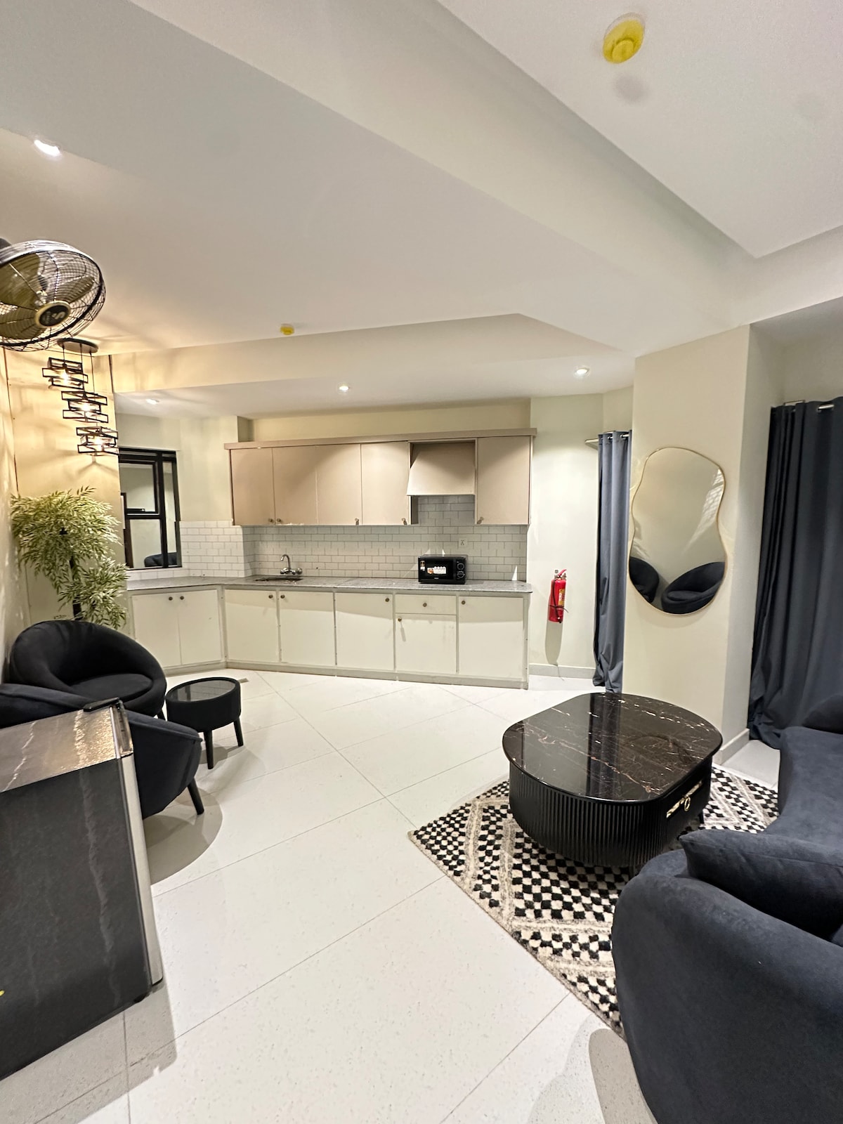 ✨ Modern & Cozy Stay ✨ Enjoy a stylish retreat featuring a queen-size bed, elegant decor, and warm lighting. Large windows offer a beautiful view, while the comfy seating area is perfect for relaxing. ✅ Key Features: Modern, bright interior Air conditioning Peaceful and private location 📍 Close to cafes, shops, and attractions — ideal for couples or solo travelers.