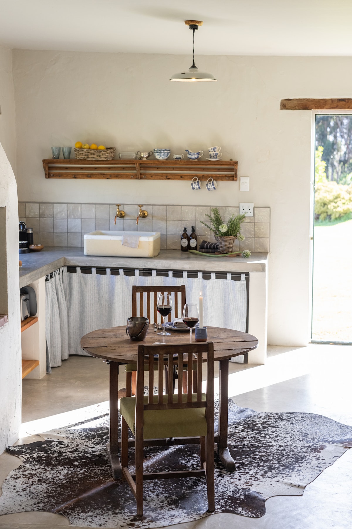 Situated on a small holding 5km outside Franschhoek, opposite the exquisite La Motte Wine Estate, Heidi’s Barn offers the perfect self-catering base from which to explore the Winelands. A fire pit, outdoor dining area and a large swimming pool (shared with one other cottage) are perfect for summertime relaxation while an indoor wood-burning fireplace and wooden floors throughout make for a cosy winter escape. The barn runs on mains power with solar back up for load shedding.