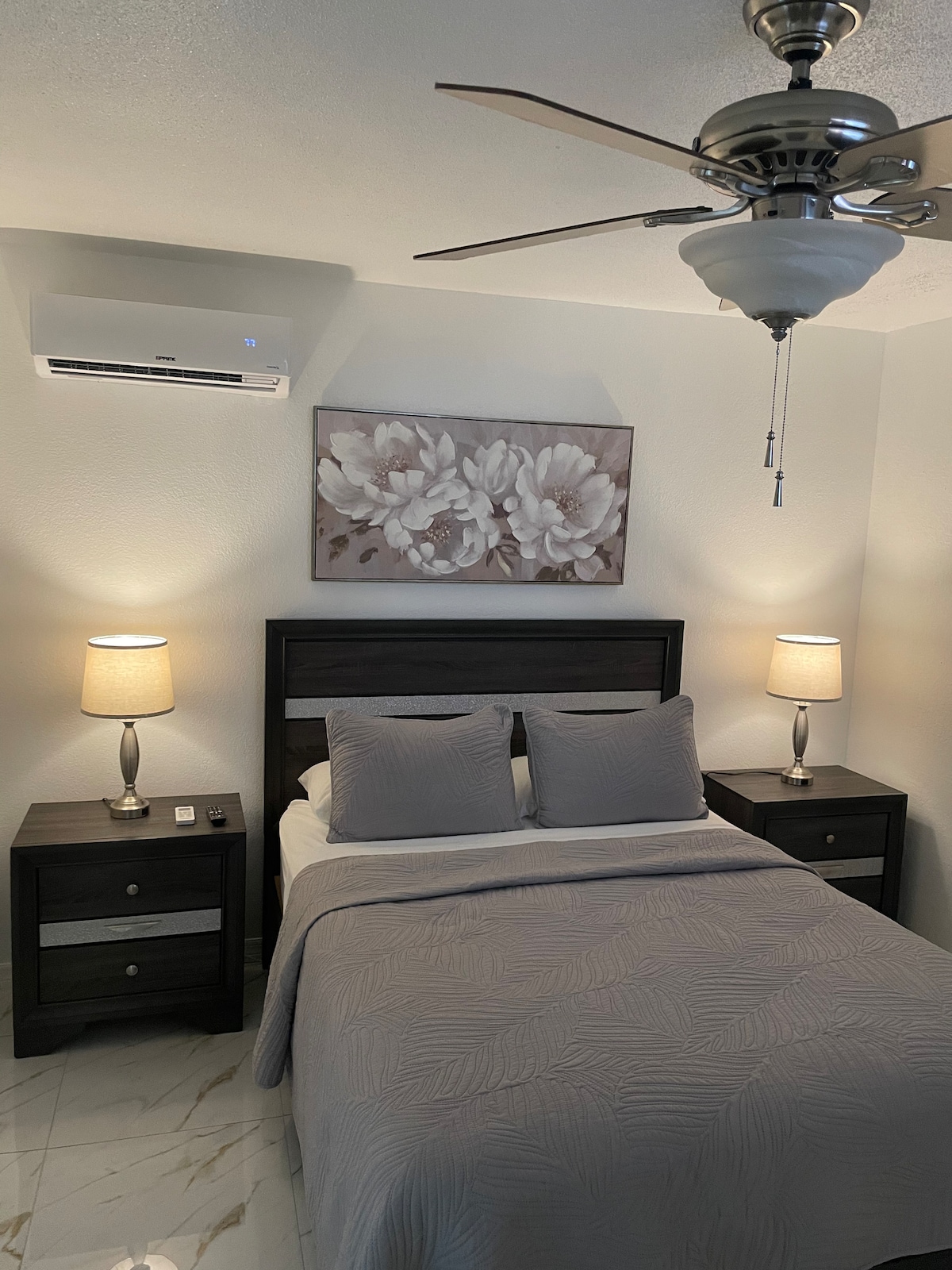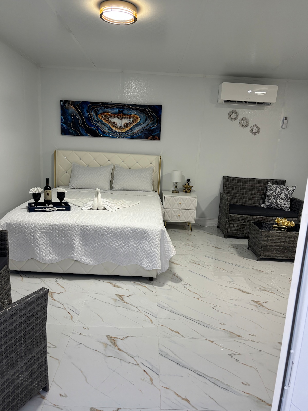 Hermosa suite acogedora en la bahía de Tampa, con patio amplio y lindo jardín para disfrutar de momentos agradables e íntimos al aire Libre. Habitación acogedora y totalmente equipada para su disfrute. Baño con ducha dentro de la habitación. Cuenta con cocina totalmente equipada y refrigerador. También dispone de comedor y un espacio con escritorio y silla para trabajar. Dispone de Wifi en toda la habitación