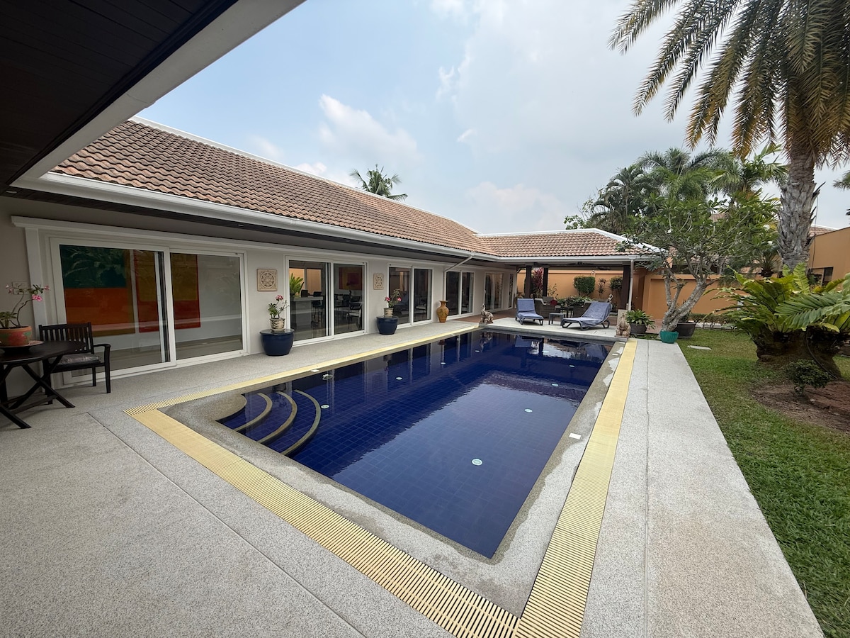 Paradise Estate, Pattaya We're the PERFECT country getaway: 9 bedrooms, a beautiful 18 meter pool, fitness center, BBQ, pool table, ping pong, darts, shuffleboard, badminton, volleyball, and football. Near to Lake Mabprachan (bicycling, jogging, restaurants and pubs), and only 1km from Chang Thai Thappraya Safari (ATVs, elephants, shooting, etc.). Animal Paradise Cafe adjacent (open 10am-10pm). Sauna, cold plunge, and jacuzzi extra, otherwise no extra charges, enjoy!