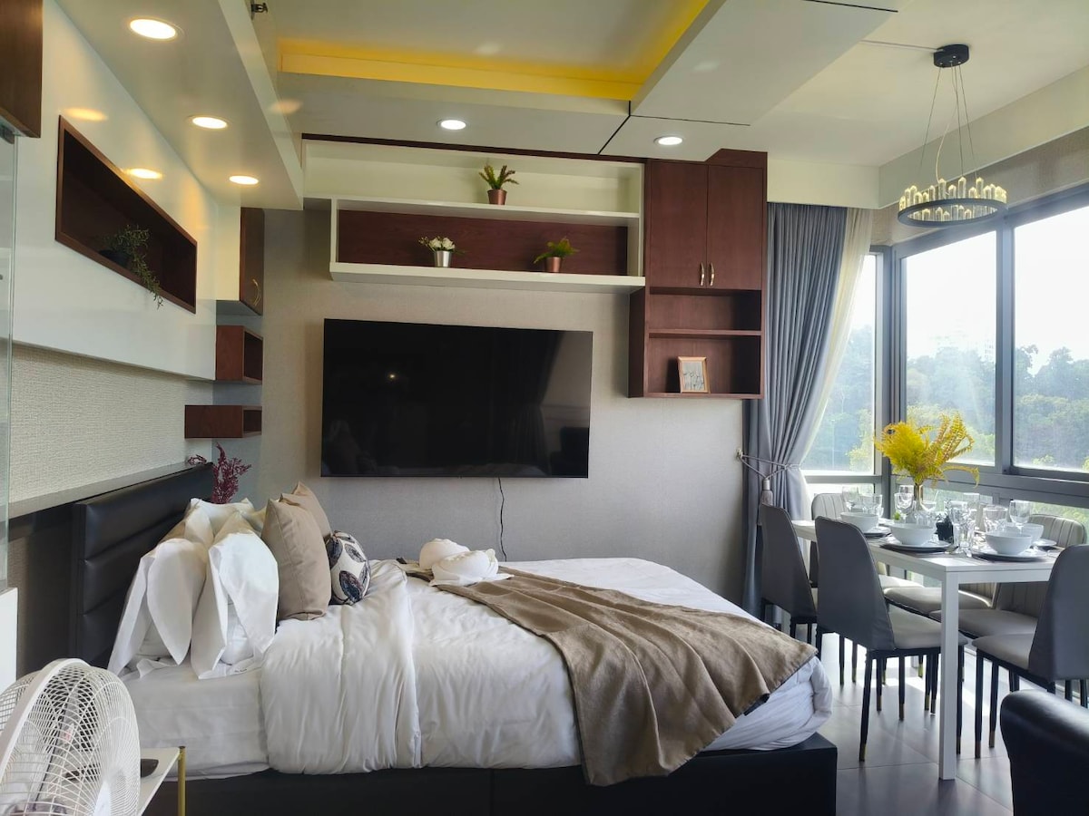 此处梦之居所位于帕山脚下,位置独一无二。从30层的两居室的各个房间向外望去,都可以看见令人惊叹的海景🌊与山景⛰️。迷人的芭提雅黄金海岸线与帕山顶的大佛和皇宫都在最恰到好处的视野范围内。全新的房子采用了最优质的家具和电器进行装修,旨在营造一个即舒服温暖又明亮现代的居住氛围。 小区内设有优雅的咖啡馆和便利店,3分钟步行便可到达附近地道的当地美食和按摩店。5分钟到达芭提雅最大的卡丁车赛场。8分钟可以到达去格兰岛等景点最热闹的码头。无论您的目的地是热烈喧闹的芭提雅海滩,还是朴素简单又温情的中天海滩,十五分钟步行都可以妥妥的抵达。或者乘坐宋体车20泰铢去往任意好玩的地方。 梦居所内提供给各位来芭提雅旅行的家人温馨的小贴士,免费的高速Wi-Fi,24小时热水,完备的厨房用品。精致的装修和各高档通用设备。 房源所处小区是泰国最顶级声望,高档物业管理极佳的 unixx。住宿期间你可以充分享受如同五星级酒店管家般的贴心体验。小区有可供订车及信息咨询的前台,免费的市区循环接驳巴士(极大方便了各位居家购物和玩耍),芭提雅最大的社区花园,游乐场和几个分布于各处的按摩式游泳池。 欢迎回家!😊
